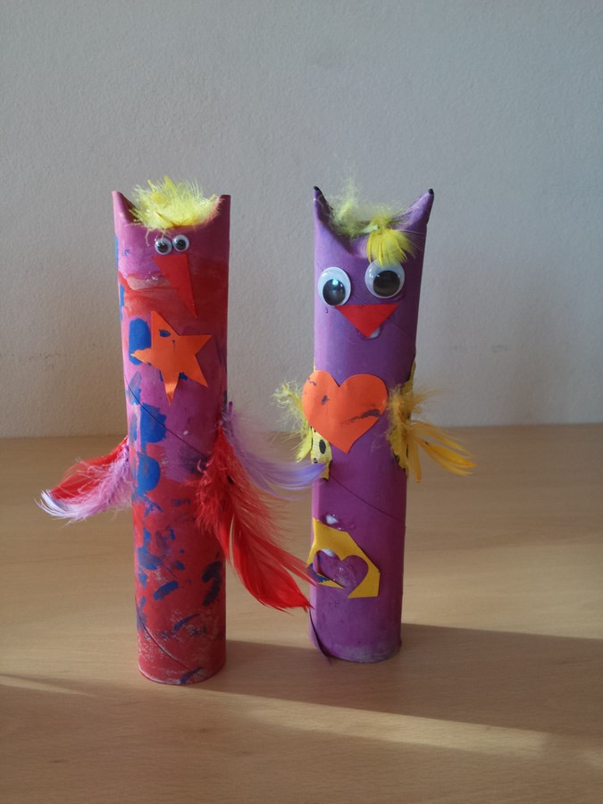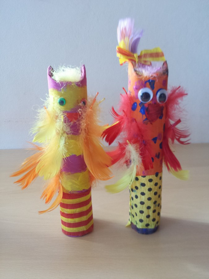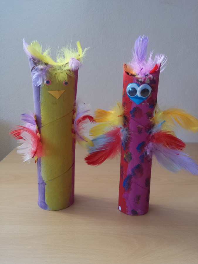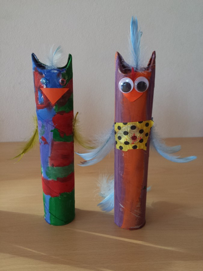 Dużym zainteresowaniem cieszyły się papierowe sówki zrobione z rolek papieru, kolorowe maski oraz tęczowe chmurki.