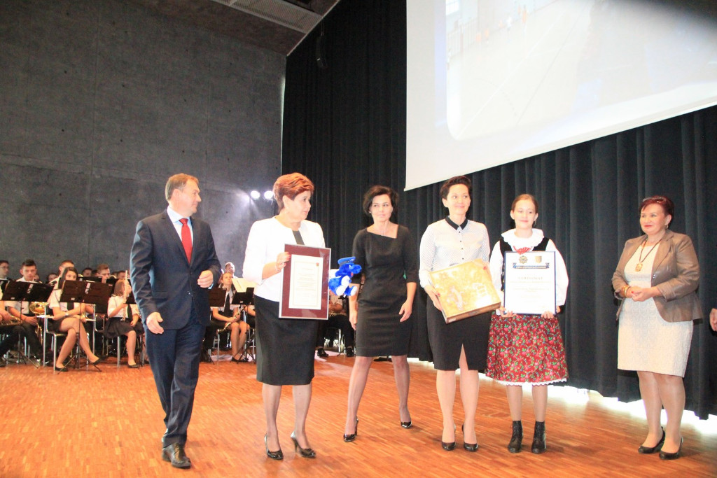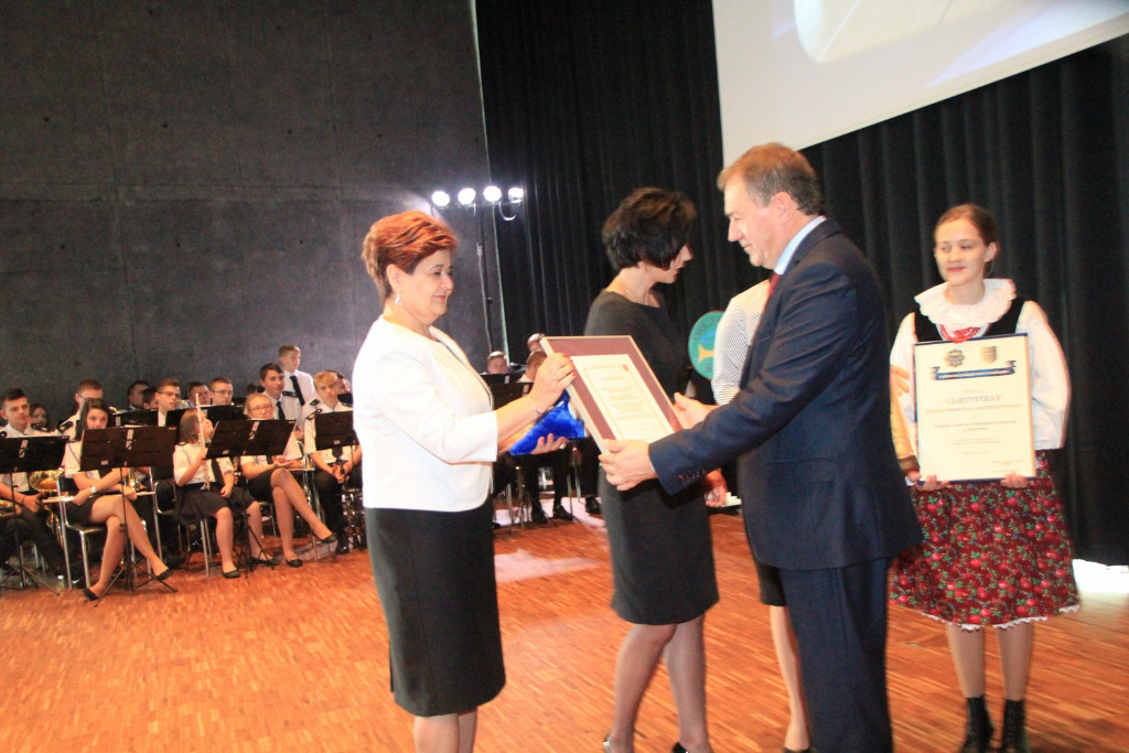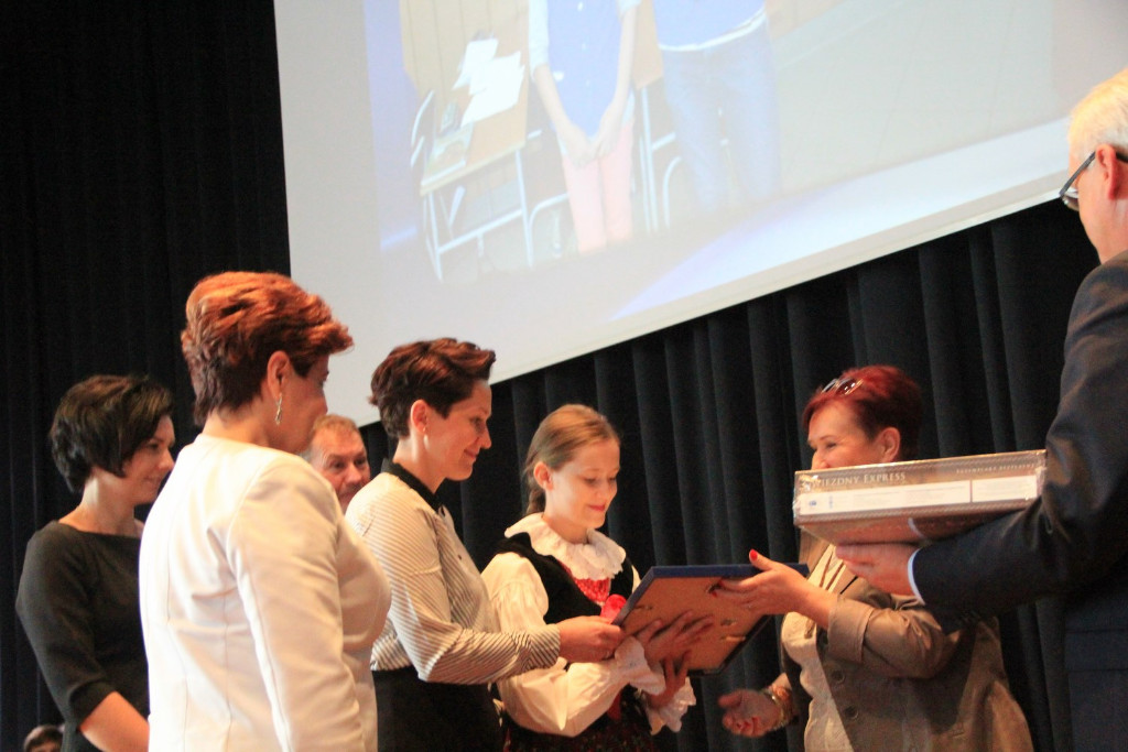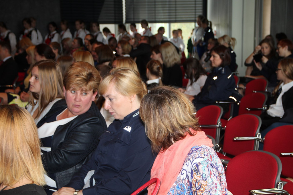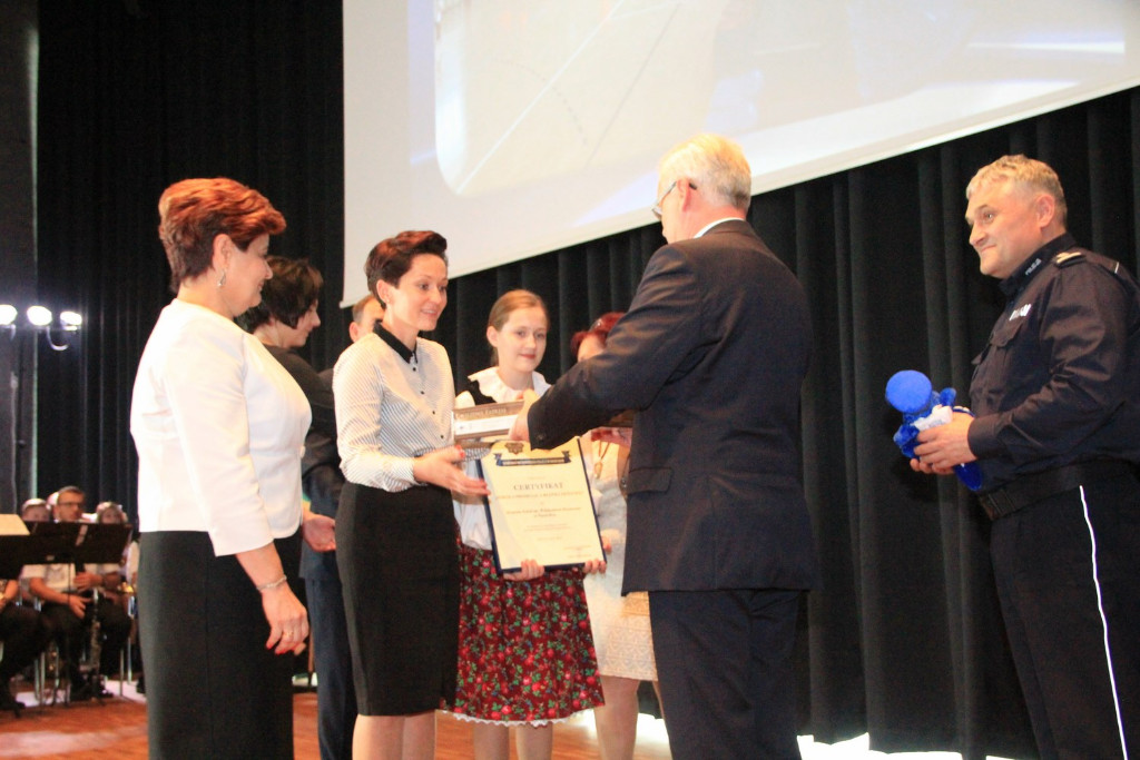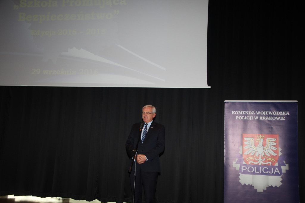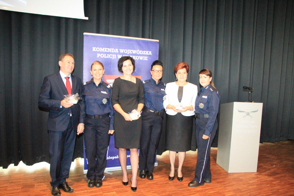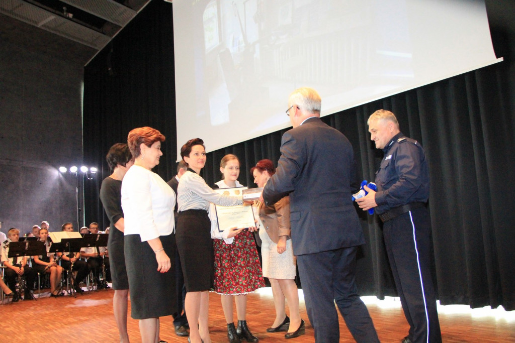 Certyfikat w imieniu Zespołu Szkół w Pasierbcu z rąk Komendanta Wojewódzkiego Policji insp. Roberta Strzeleckiego oraz Małopolskiego Wicekuratora Oświaty Haliny Cimer odebrali Dyrektor Rozalia Kuchta, nauczyciel koordynator projektu Alicja Banat oraz przedstawiciel Samorządu Uczniowskiego Dorota Pałka.