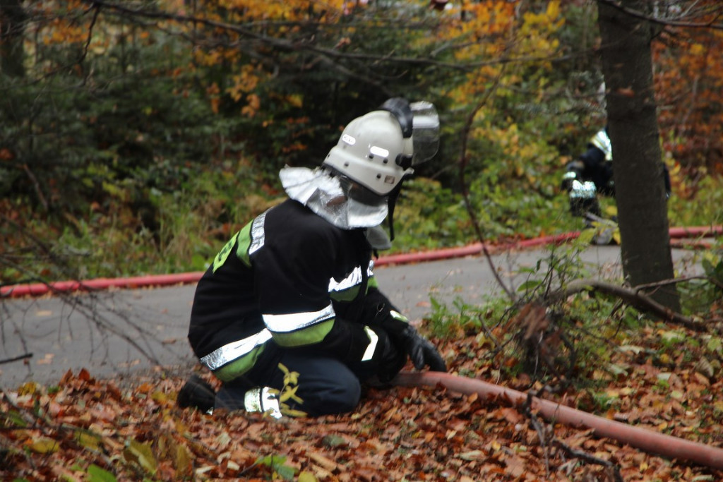 Poprzez ćwiczenia strażacy doskonalili umiejętności organizacji, współpracy z innymi jednostkami oraz prowadzenia działań gaśniczych w trudnym terenie.