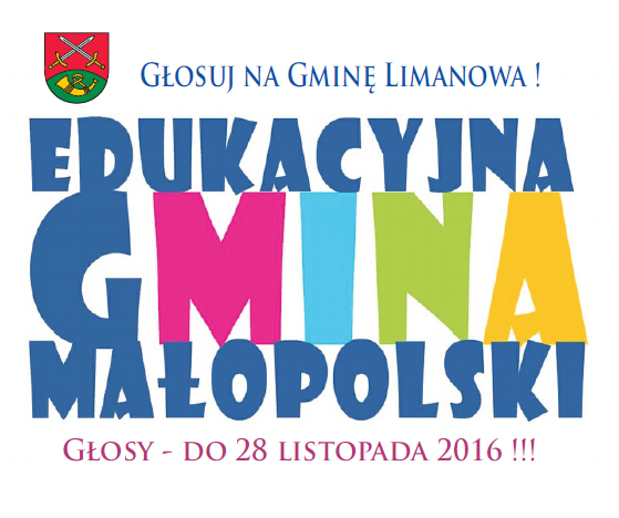 Aby pomóc Gminie Limanowa w uzyskaniu tytułu „Edukacyjna Gmina Małopolski 2016” możecie Państwo oddawać swoje głosy do dnia 28 listopada br. do godziny 9.30.