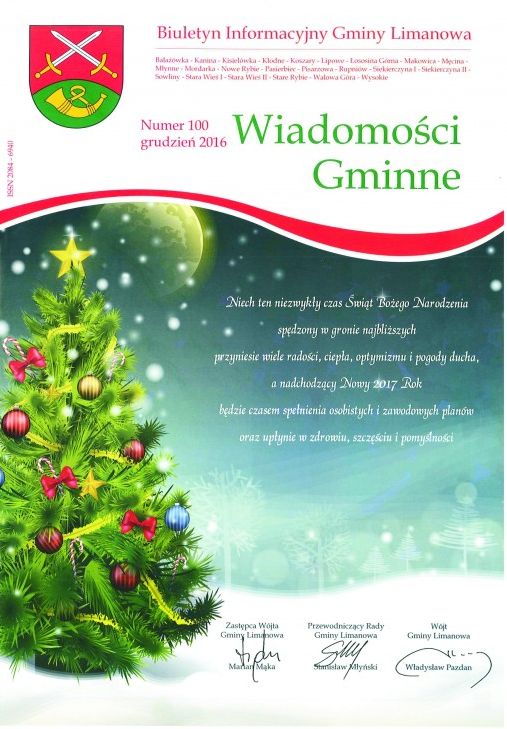 Zapraszamy do lektury nowego świątecznego numeru Biuletynu Informacyjnego 'Wiadomości Gminne", życząc spokojnych i radosnych Świąt Bożego Narodzenia.
