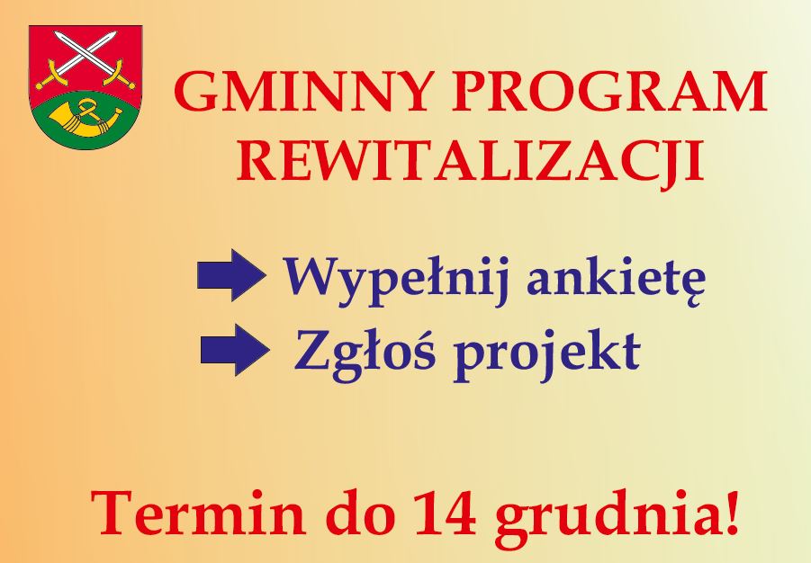 Z uwagi na przystąpienie Gminy Limanowa do opracowania Gminnego Programu Rewitalizacji, zachęcamy do udziału w Ankiecie konsultacyjnej oraz zgłaszania projektu do Gminnego Programu Rewitalizacji za pomocą Karty zgłoszeniowej.