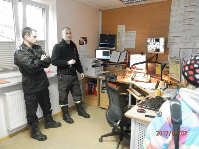Kolejnym etapem był pokaz alarmu bojowego dla sekcji strażaków z JRG wraz z wyjazdem samochodu na plac manewrowy. Na placu strażacy zaprezentowali wyposażenie samochodu ratowniczo-gaśniczego. Ostatnim, etapem była wizyta na stanowisku Kierowania Komendy Powiatowej PSP. W tym miejscu uczestnicy mogli się przekonać „jak to działa” gdy zadzwonią na nr 998 lub 112 i jak mają alarmować służby ratownicze w razie zauważonego zagrożenia.