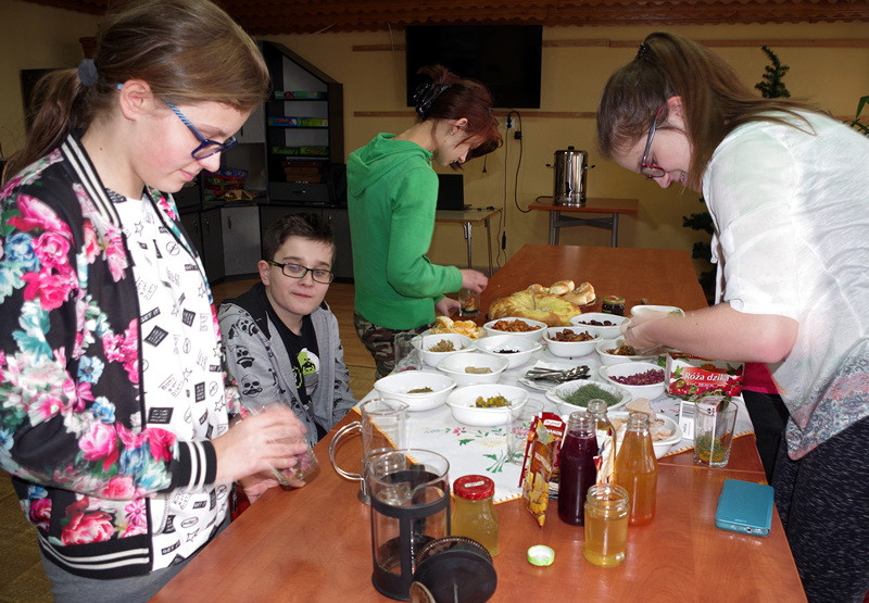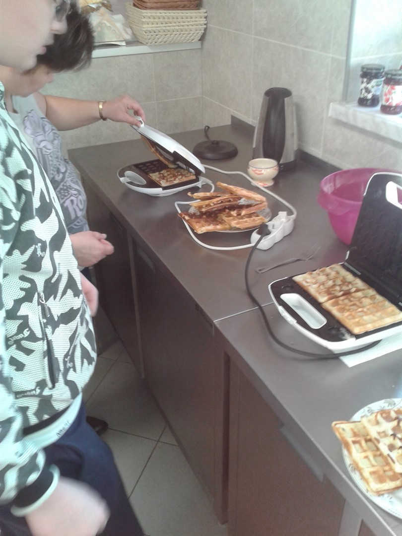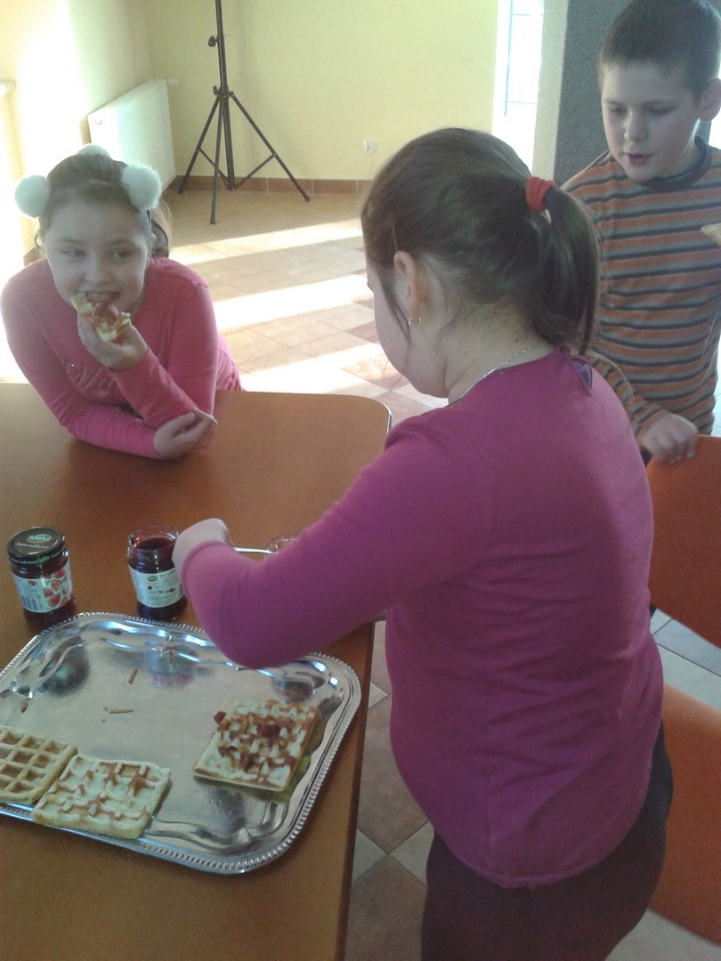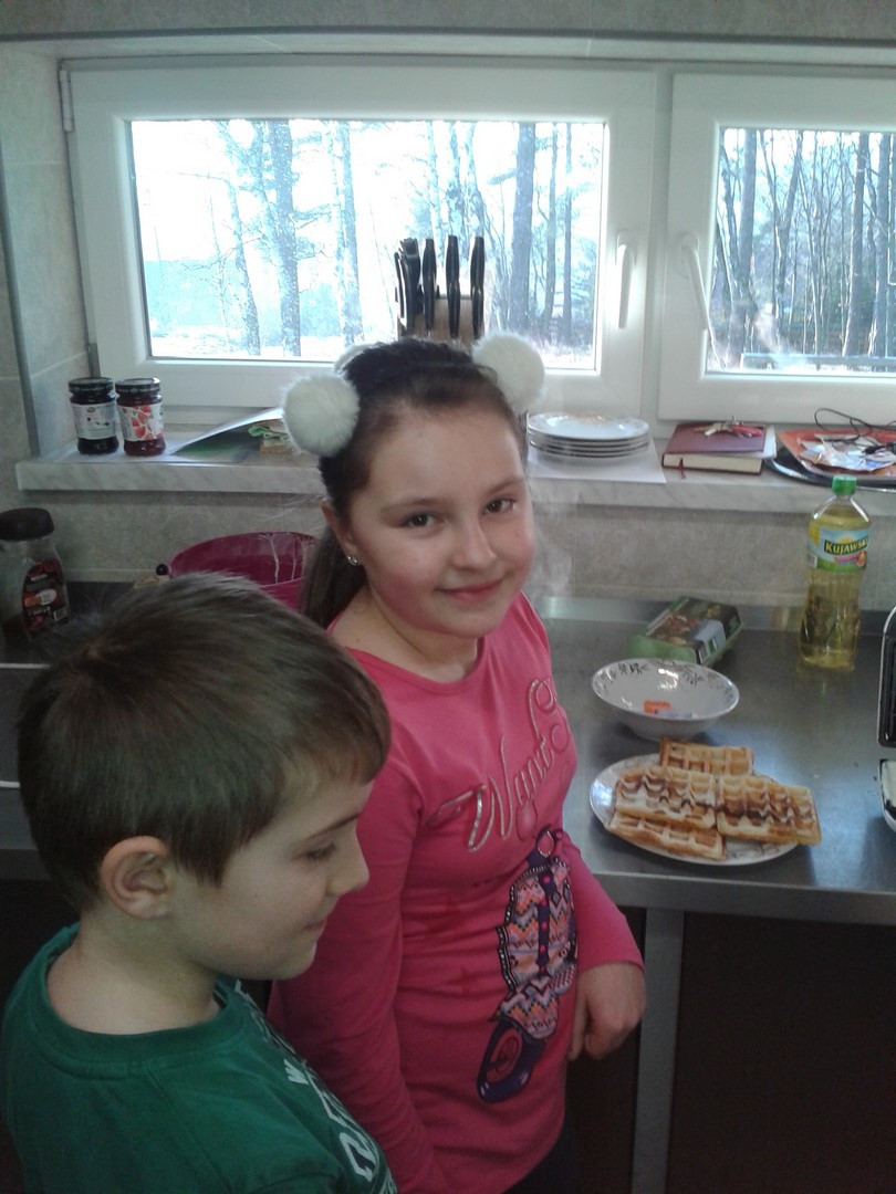 Dużym zainteresowaniem cieszyły się zajęcia kulinarne na których uczestnicy pod czujnym okiem opiekunów, nie tylko mieli możliwość przygotowania ciasteczek, czy gofrów ale również ich późniejszego skonsumowania.