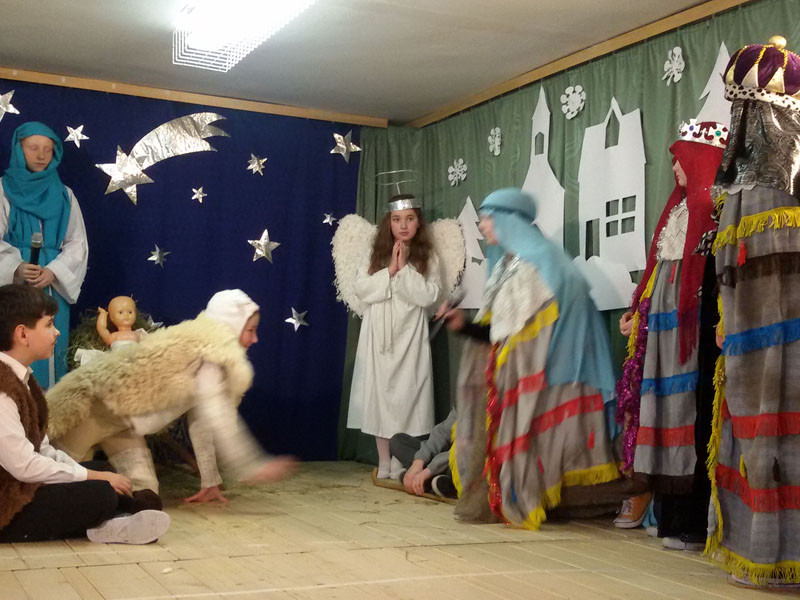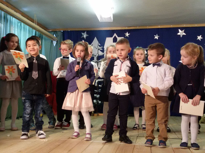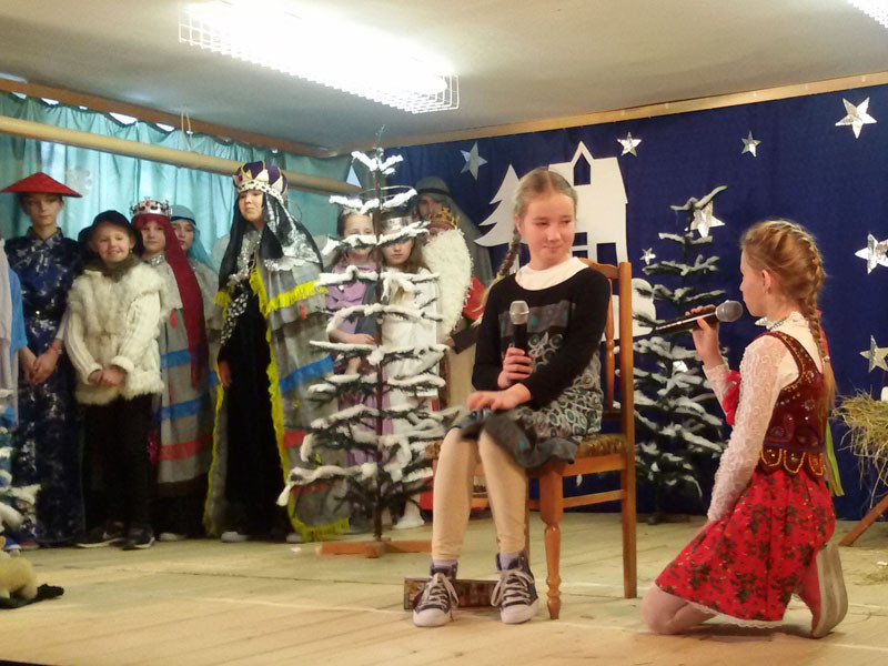 00 w miejscowym kościele, w której uczestniczyli nie tylko Babcie i Dziadkowie, ale także ich wnuczęta, rodzice i nauczyciele. Po nabożeństwie wszyscy udali się do szkoły. Występ rozpoczął się przedstawieniem jasełek, przygotowanych przez uczniów starszych klas pod kierunkiem Zdzisławy Zoń, a zaraz po tym nastąpiła część artystyczna, w której udział wzięli najmłodsi uczniowie szkoły.