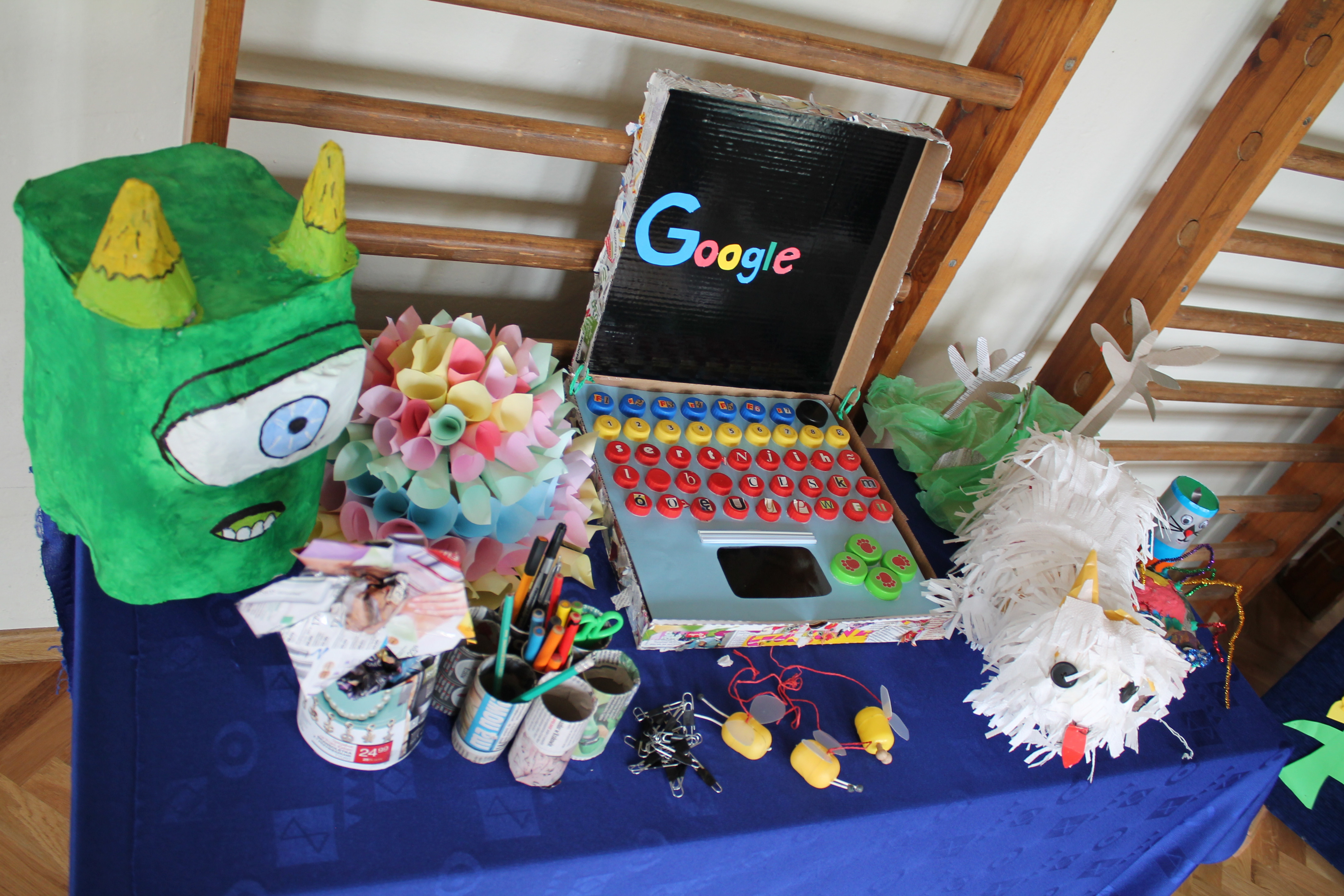 Czy wiesz, że porzucona w lesie butelka rozkłada się aż 2000 lat? Eko-Kompania przeprowadziła ankietę wśród uczniów klas II – VI dotyczącą wiedzy na temat czasu rozkładu w ziemi poszczególnych surowców. Ku radości pracowników szkoły, okazało się, że uczniowie w większości przypadków zdają sobie sprawę jak dużo czasu potrzeba, aby wyrzucone na śmietnik odpady uległy degradacji. Członkowie Eko-Kompani przygotowali również galerię prac plastycznych wykonanych z surowców wtórnych. Wśród prac znalazły się zabawki, przedmioty codziennego użytku, a nawet biżuteria! Eko-Kompania zwróciła również uwagę na recykling odpadów elektrycznych i elektronicznych. Uczniowie wraz z opiekunem przygotowali prezentację, która była odpowiedzią na pytanie, dlaczego recykling tego typu sprzętu jest tak ważny. Uczniowie biorący udział w projekcie w trakcie zajęć stworzyli plakaty prezentujące przedmioty, zużyty sprzęt lub opakowania, które nadają się do ponownego wykorzystania.