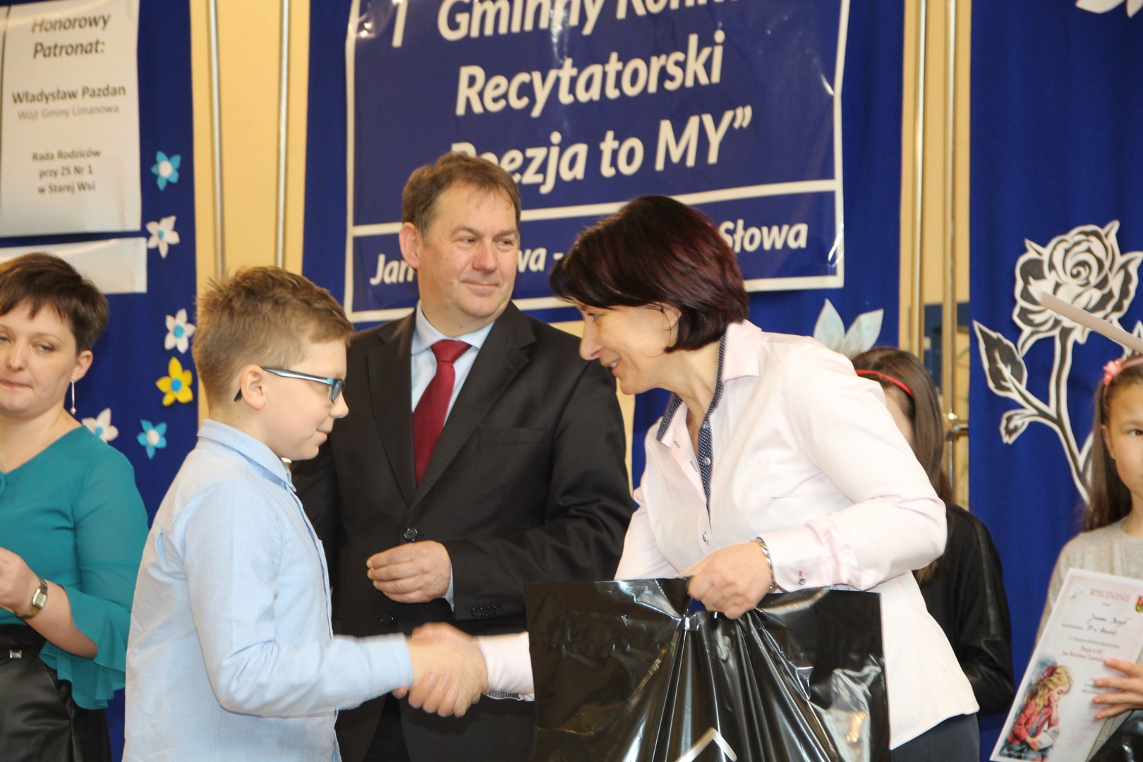 Poezja to MY. Jan Brzechwa – Czarodziej Słowa, otrzymali z rąk Mariana Mąki - zastępcy Wójta Gminy Limanowa oraz Haliny Mąka - dyrektor ZS Nr 1 w Starej Wsi nagrody książkowe i rzeczowe, a także pamiątkowe dyplomy. Nagrody dla laureatów zostały ufundowane przez Gminę Limanowa i Miejska Bibliotekę Publiczną w Limanowej. Pozostałym uczestnikom konkursu wręczone zostały nagrody pocieszenia oraz pamiątkowe dyplomy.