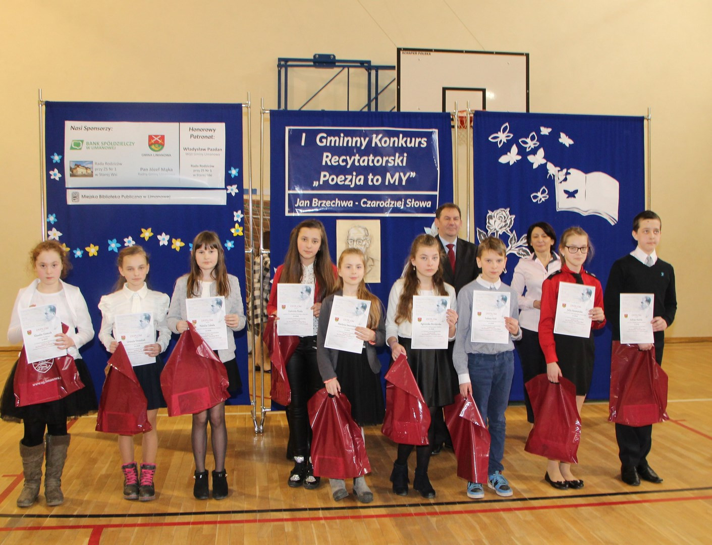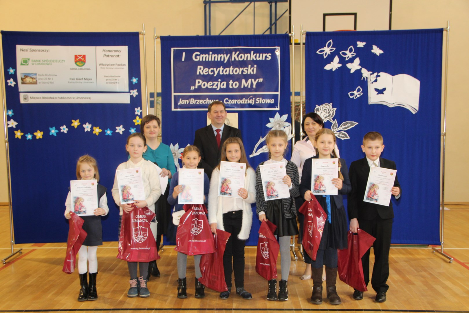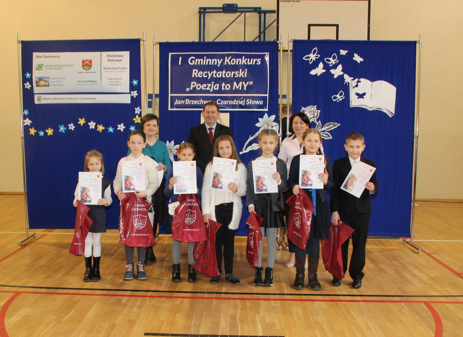Poezja to MY. Jan Brzechwa – Czarodziej Słowa. Konkurs został objęty honorowym patronatem Wójta Gminy Limanowa i Rady Rodziców przy ZS Nr 1 w Starej Wsi. Sponsorami I Gminnego Konkursu Recytatorskiego