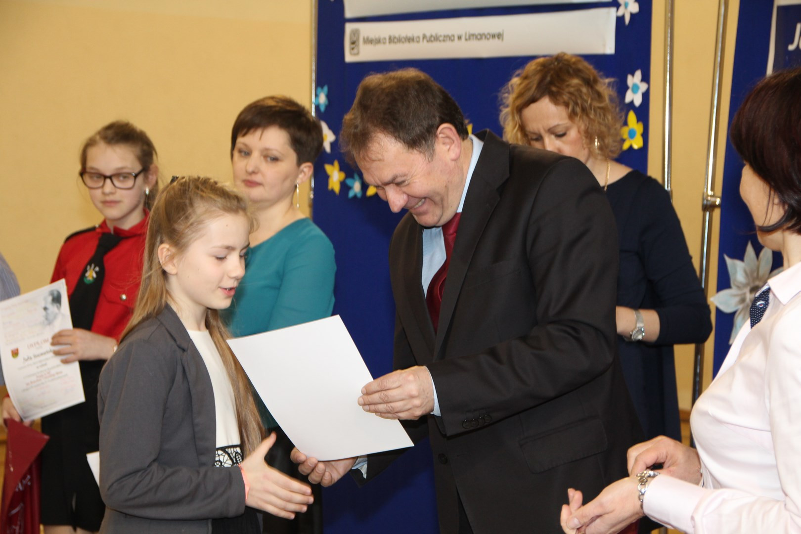 Do oceny recytacji uczestników konkursu i wyłonienia zwycięzców powołano jury w składzie: Przewodnicząca Jury Konkursu - Joanna Michalik, dyrektor Miejskiej Biblioteki Publicznej w Limanowej oraz Krystyna Trzupek, dziennikarka, redaktor Tygodnika Ziemia Limanowska - lokalnego dodatku do Gazety Krakowskiej i Agata Król, logopeda z Poradni Psychologiczno - Pedagogicznej w Limanowej.
