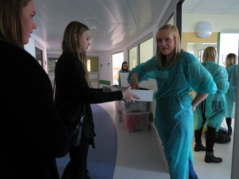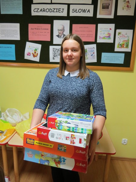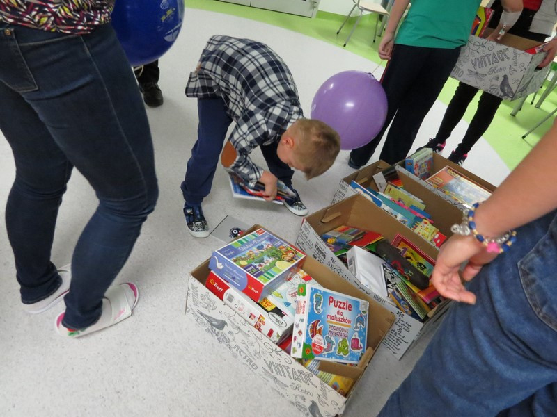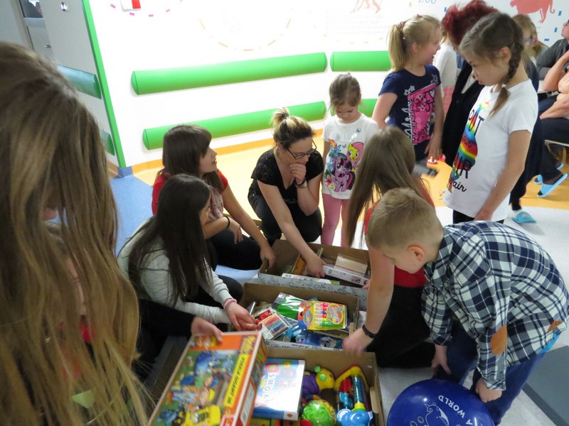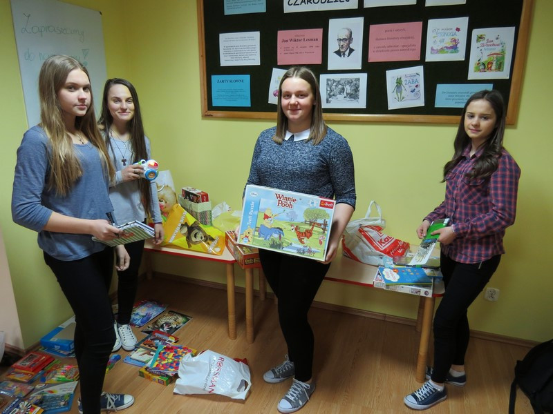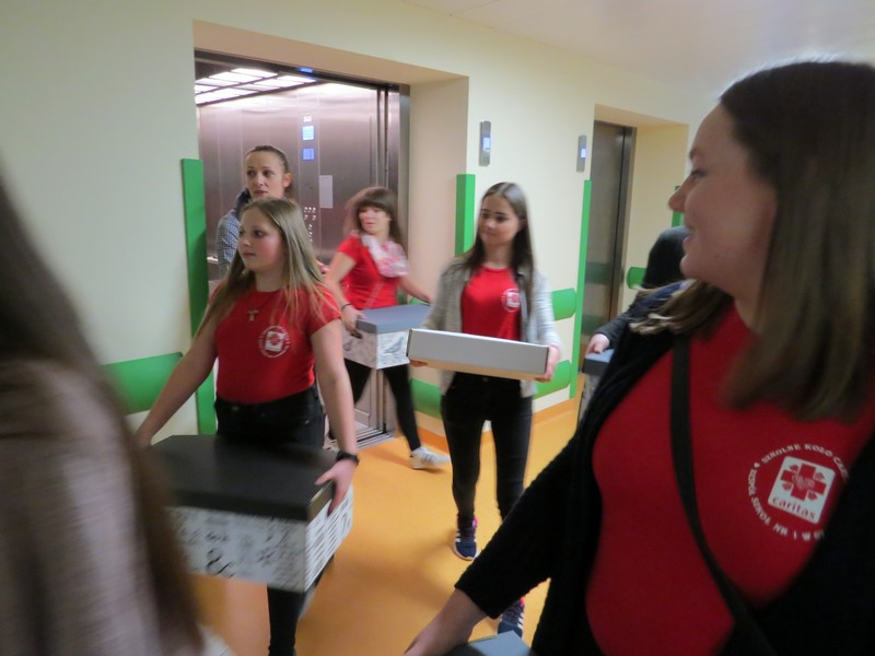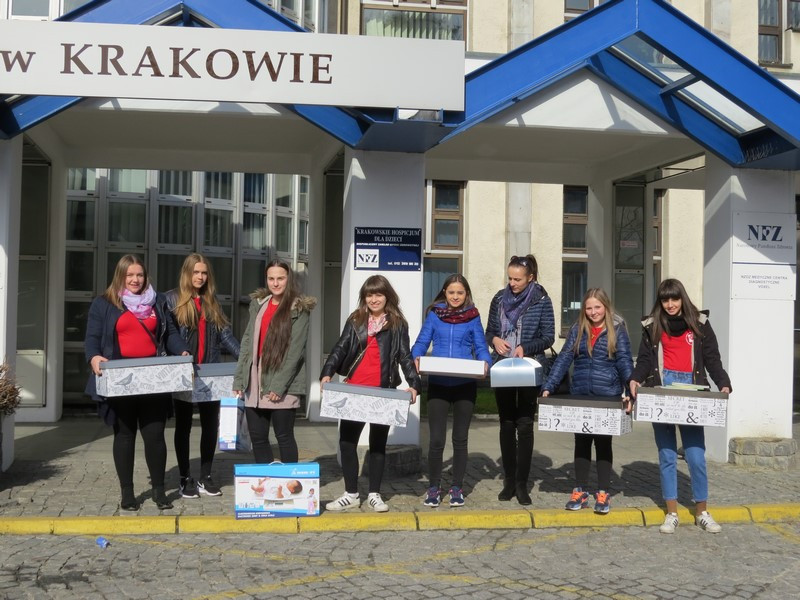 Wszystkie podarowane i zakupione rzeczy wolontariusze zapakowali do ozdobnych pudełek. Do szpitala pojechała grupa siedmiu wolontariuszek: Marta Kędroń, Kasia Kędroń, Aneta Duda, Natalia Ślazyk, Izabela Trojanowska, Magdalena Młynarczyk i Ola Talarczyk, które reprezentowały naszą szkołę, a także opiekujące się nimi nauczycielki Jolanta Kordeczka i Magdalena Cepielik.