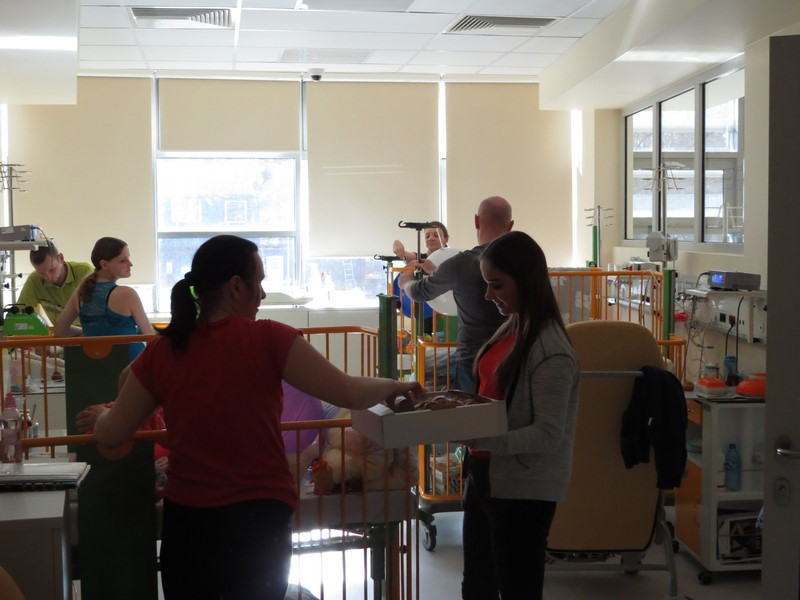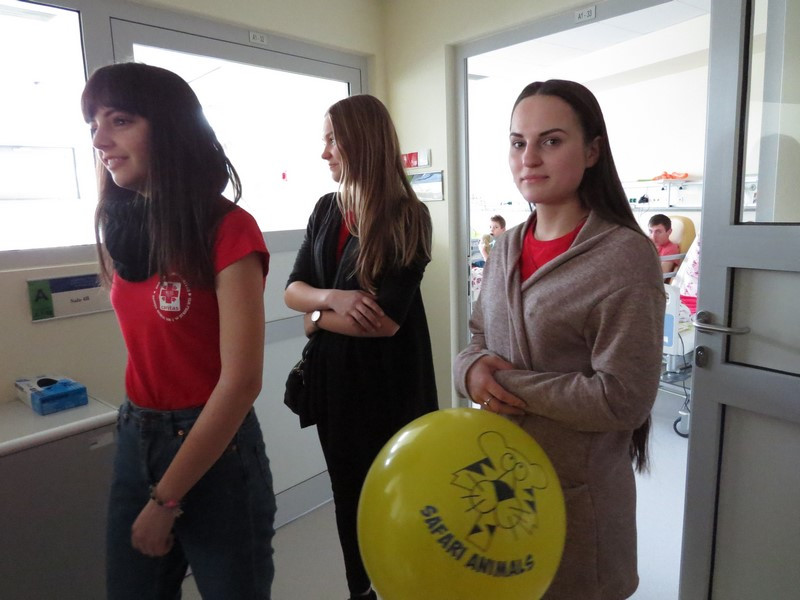 Wizyta w szpitalu rozpoczęła się od bardzo sympatycznego przywitania przez doktora Zbigniewa Kordona, zespół pielęgniarek oraz rodziców i pacjentów. Uczestniczki akcji na ręce pracowników oddziału, przekazały słodki serduszkowy torcik, a dla dzieci prezenty, które mamy nadzieję, choć trochę umilą im dłużący się czas spędzany w szpitalu. Następnie wolontariuszki miały możliwość odwiedzenia sal, w których przebywali chorzy. W trakcie odwiedzin dziewczynki częstowały wszystkich pysznymi muffinkami oraz rozdawały upominki najmłodszym pacjentom.