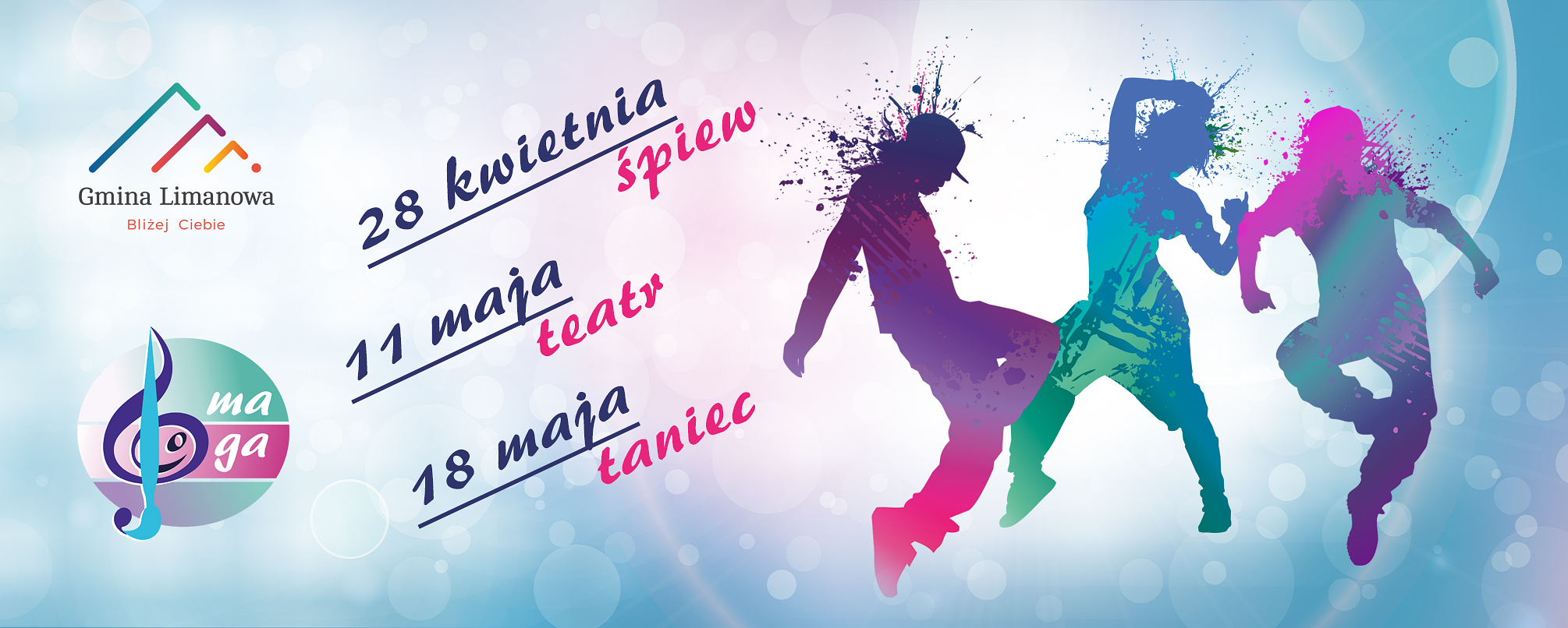 Na przełomie kwietnia i maja odbędzie się czwarta odsłona  Gminnego Przeglądu Artystycznego "MaGa - Młodzi artyści Gminy atakują". Podobnie jak w minionych trzech latach w ramach Przeglądu odbędą się trzy konkursy: śpiewu, scenek teatralnych i tańca. Ze względu na fakt, że termin zgłoszeń zbiegł się ze okresem świątecznym, został on przedłużony do czwartku 20 kwietnia.