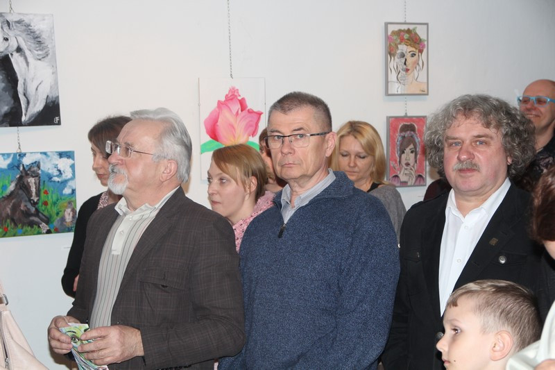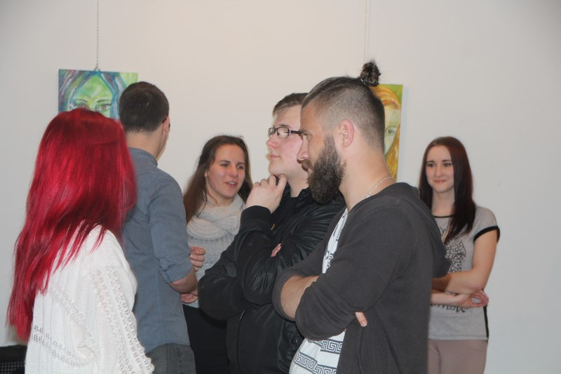 Następnie zaanonsowała każdego ze swoich podopiecznych, wyjaśniając krótko czym konkretnie od strony artystycznej i jakim rodzajem sztuki się zajmuje. Każdy z nich zebrał sążne brawa. Brawa w pełni zasłużone. Gołym okiem widać w pracach młodych artystów talent oraz – na tym, młodym jeszcze etapie artystycznej działalności – autentyczny żar i pasję. To natenczas chyba najistotniejsze. Na podsumowanie części oficjalnej wernisażu głos jeszcze zabrała Halina Mąka, dyrektor ZS nr 1 w Starej Wsi. Dołączyła się do gratulacji oraz życzyła wielu sukcesów na przyszłość, zarówno pani Agnieszce jak i jej podopiecznym.
