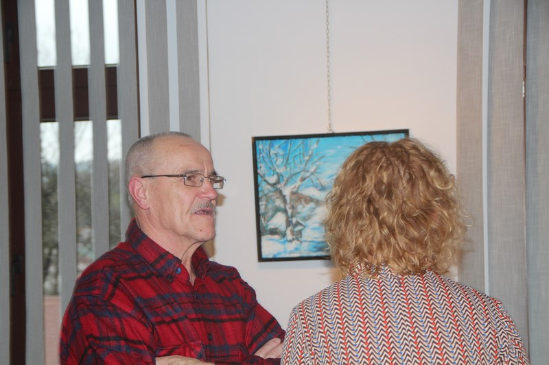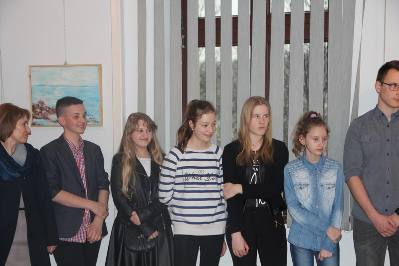 Pogoda nijak nie miała niekorzystnego wpływu na frekwencję. Licznie zebraną publiczność – przedstawicieli władz lokalnych, grono pedagogiczne z Zespołu Szkół nr 1 w Starej Wsi, a szczególnie artystów – powitała dyrektor książnicy.Najpierw pokrótce przedstawiła artystyczny biogram a następnie podziękowała pani Agnieszce, patronce i kuratorce wystawy, nauczycielce ze szkoły w Starej Wsi.