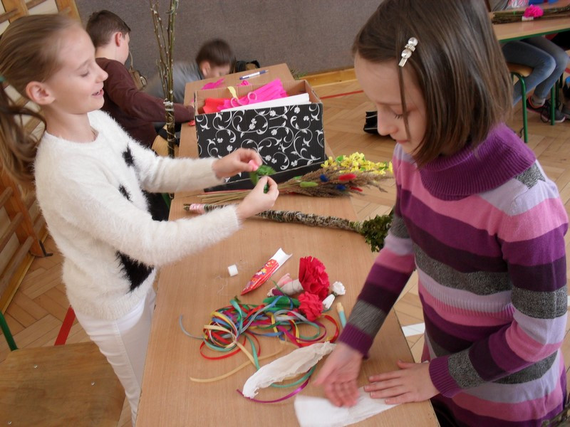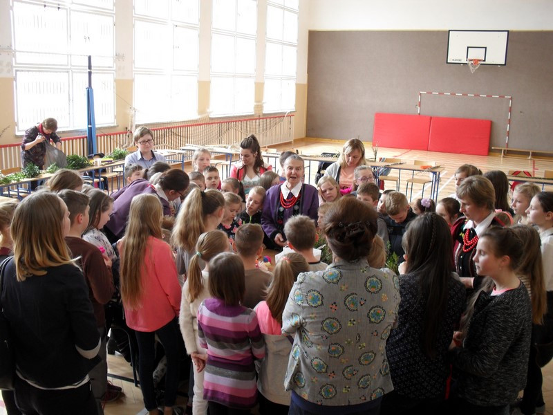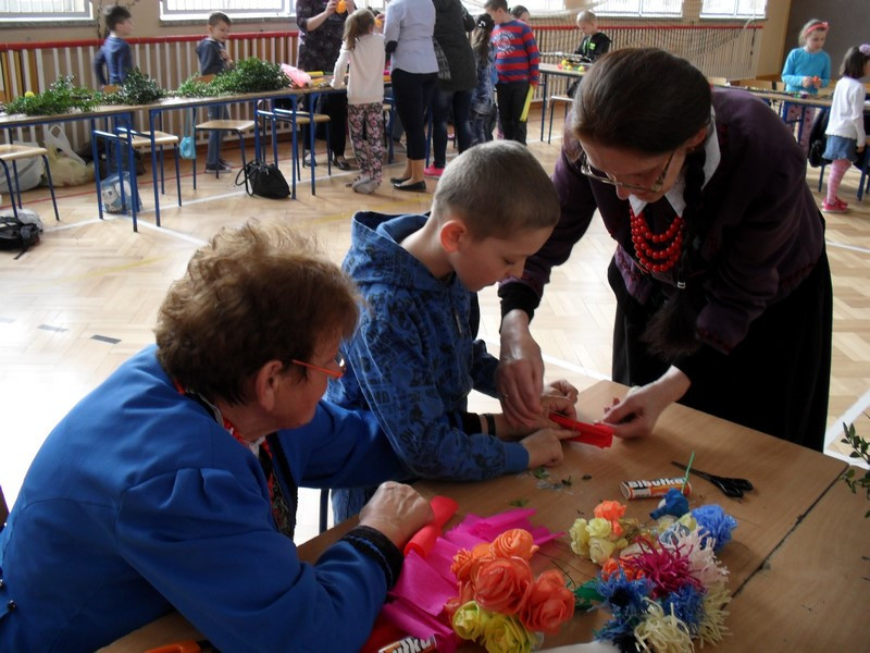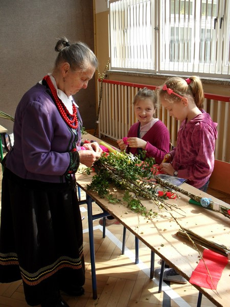 Dnia 3 kwietnia w Zespole Szkół w Pisarzowej miało miejsce niecodzienne spotkanie przedstawicieli trzech pokoleń. Warsztaty rękodzielnicze, w których uczestniczyli uczniowie, rodzice, nauczyciele oraz panie z Koła Gospodyń Wiejskich w Pisarzowej, stały się pretekstem do poznania tradycji regiony. Spotkanie zorganizowane w ramach projektu pod nazwą „Szkoła Współpracy” w zamyśle organizatorów miało być poświęcone tradycyjnym sposobom wykonania palm wielkanocnych. Już kilka dni wcześniej uczestnicy warsztatów gromadzili potrzebne materiały, m.in. wierzbowe bazie, trzcinę, suchatki, borowinki, gałązki tui i bukszpanu, a także kolorową bibułę.