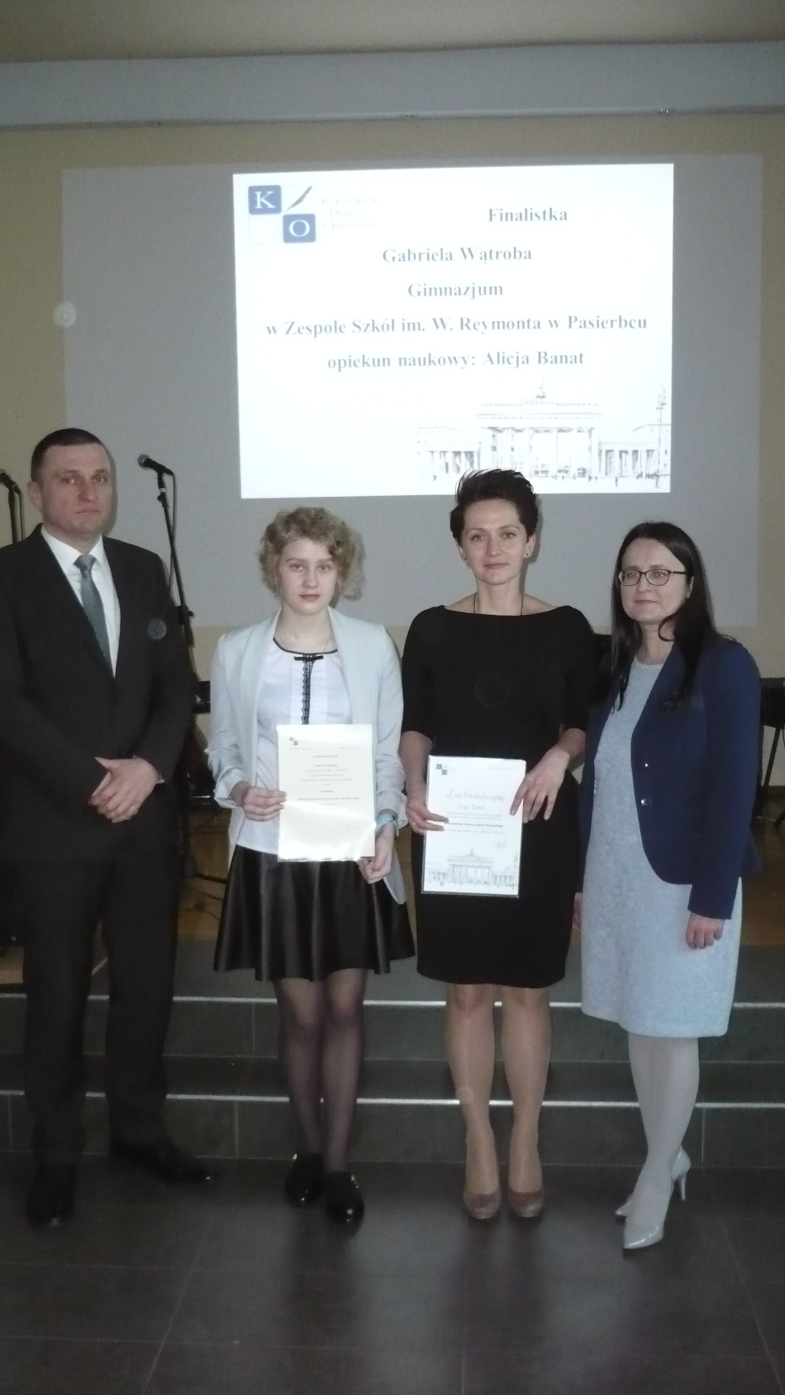 Finalistką tego konkursu została uczennica klasy II z Zespołu Szkół w Pasierbcu Gabriela Wątroba przygotowywana przez nauczycielkę Alicję Banat.