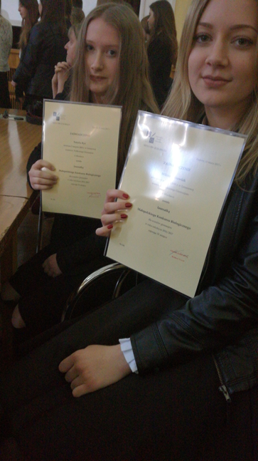 Natalia Ryś - uczennica II klasy Gimnazjum i Wiktoria Słowiak- uczennica klasy III Gimnazjum w Mordarce wspinając się po kolejnych, szczeblach zostały Laureatkami w Małopolskim Konkursie Biologicznym.