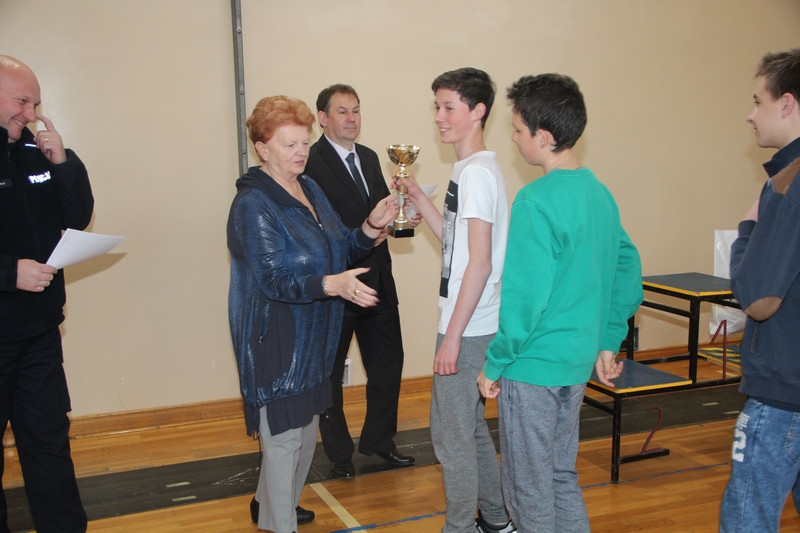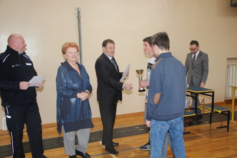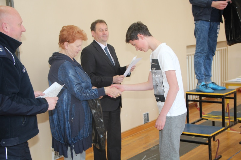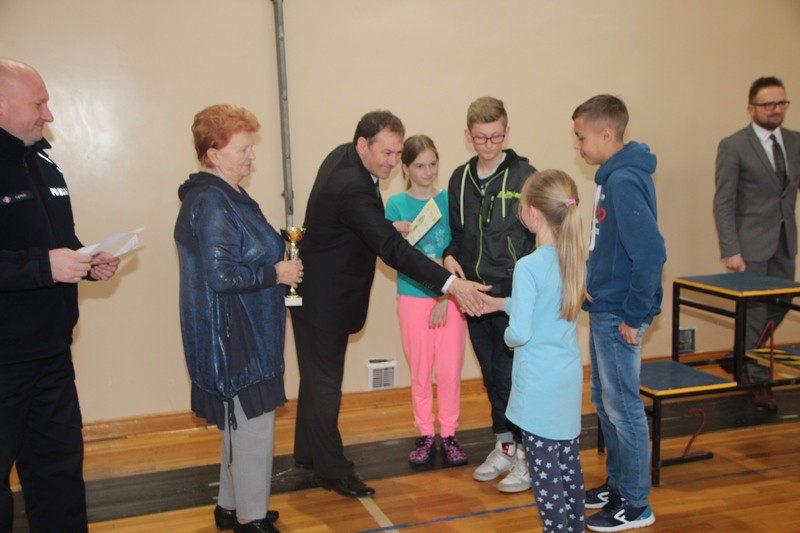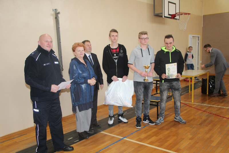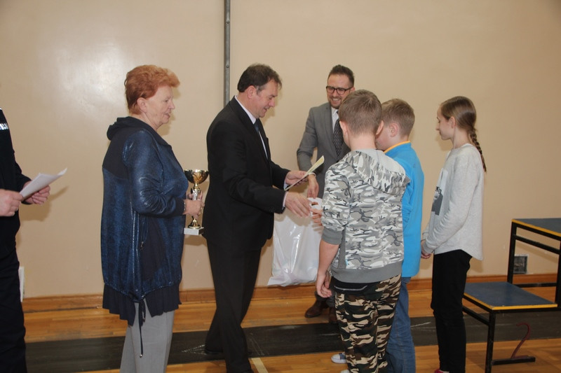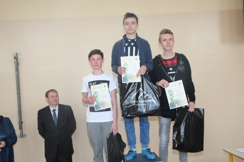 Wszyscy uczestnicy Turnieju zarówno drużynowo, jak i indywidualnie otrzymali dyplomy oraz nagrody rzeczowe ufundowane przez Urząd Gminy Limanowa. Nagrody wręczali: Wice Wójt Gminy Limanowa – Marian Mąka, Kierownik Wydziału Kultury i Promocji UG Limanowa – Wojciech Korabik, Dyrektor Zespołu Szkół nr 1 w Męcinie - Maria Lupa oraz podkomisarz Daniel Strug z KPP Limanowa.