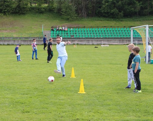 W sportowych rozgrywach aktywnie uczestniczyli zarówno młodsi, jak i nieco starsi uczestnicy tego radosnego wydarzenia. Wśród nich znalazł się również Kierownik Wydziału Kultury i Promocji Urzędu Gminy Limanowa - Wojciech Korabik, który chętnie włączył się do zabawy.