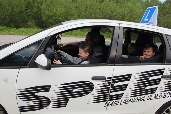 Niezwykła atrakcją była możliwość spróbowania swoich sił w roli kierowcy samochodu nauki jazdy.