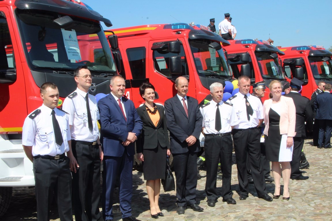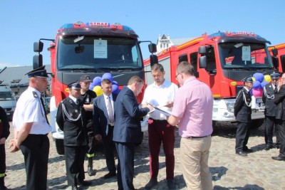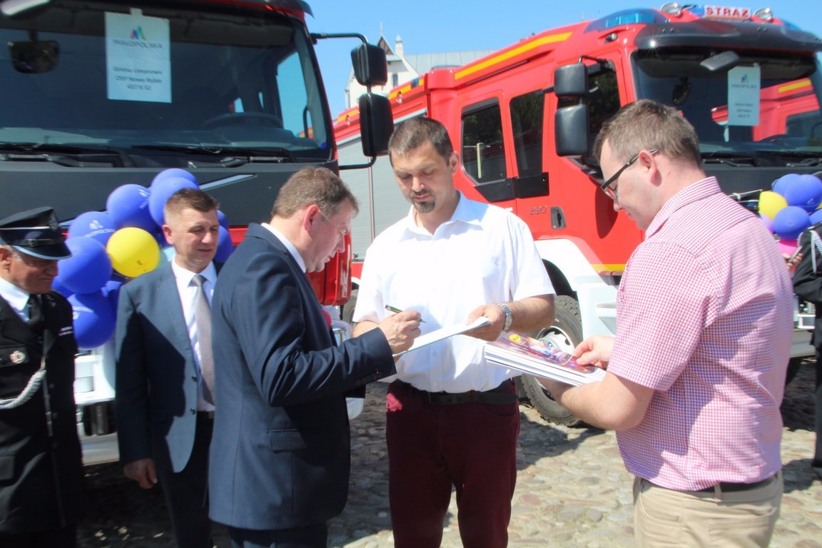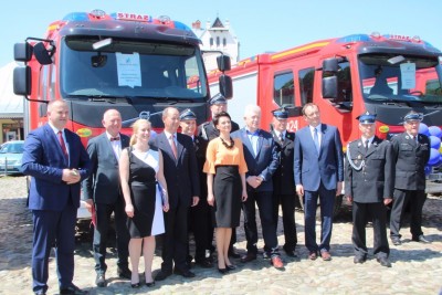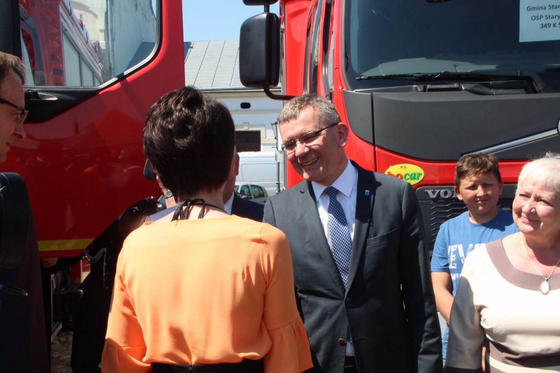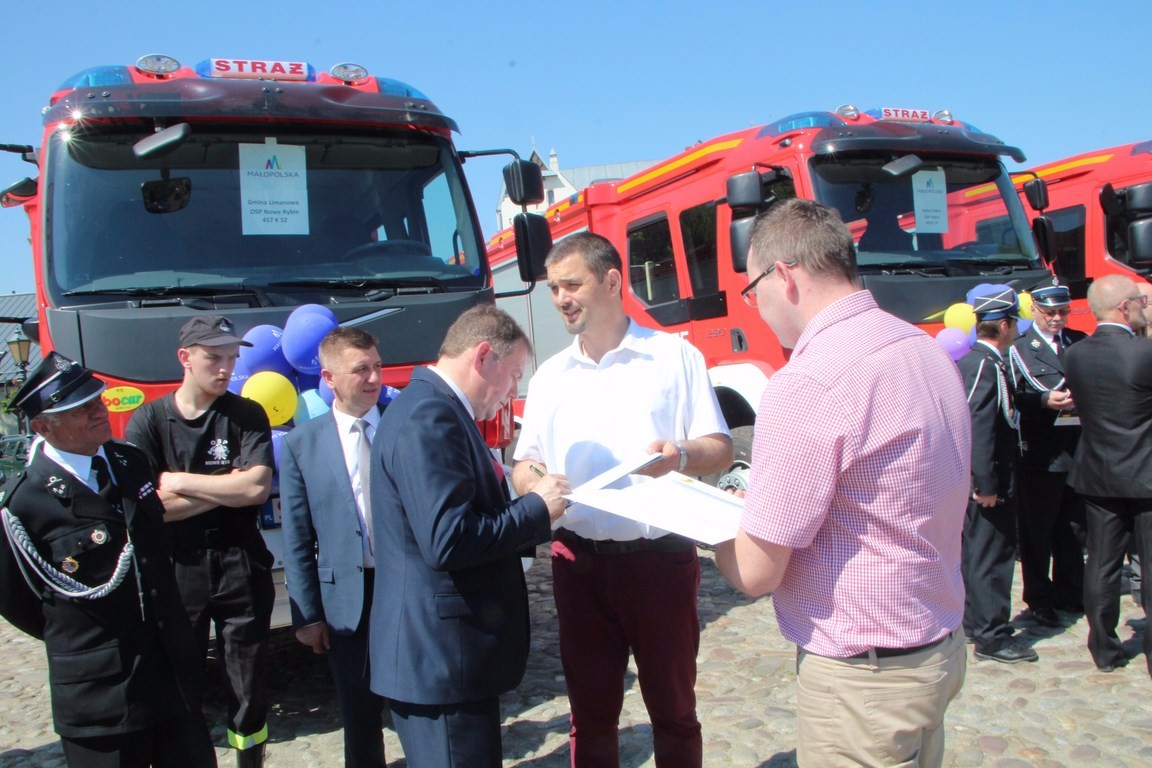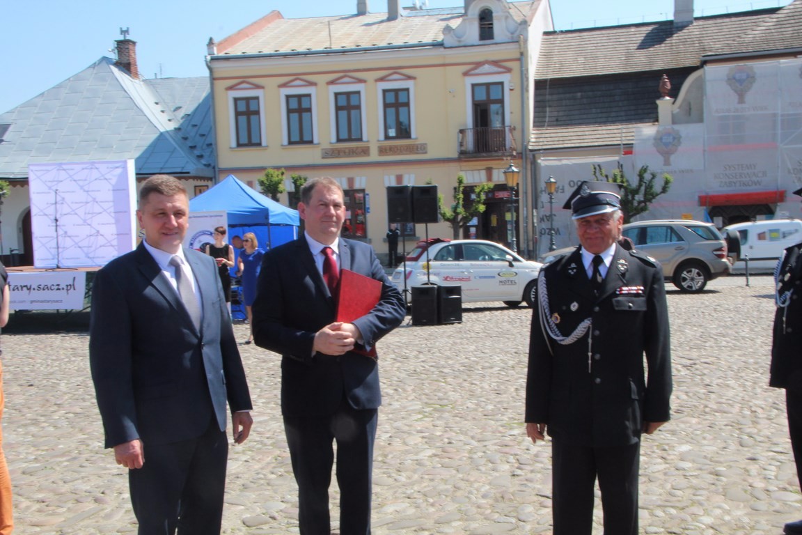 Podczas uroczystości na starosądeckim rynku przekazano dzisiaj siedem wozów strażackich, które trafiły do ochotniczych straży pożarnych z Nowego Rybia, Biecza, Dobrej, Grybowa, Laskowej, Starego Sącza i Uścia Gorlickiego.