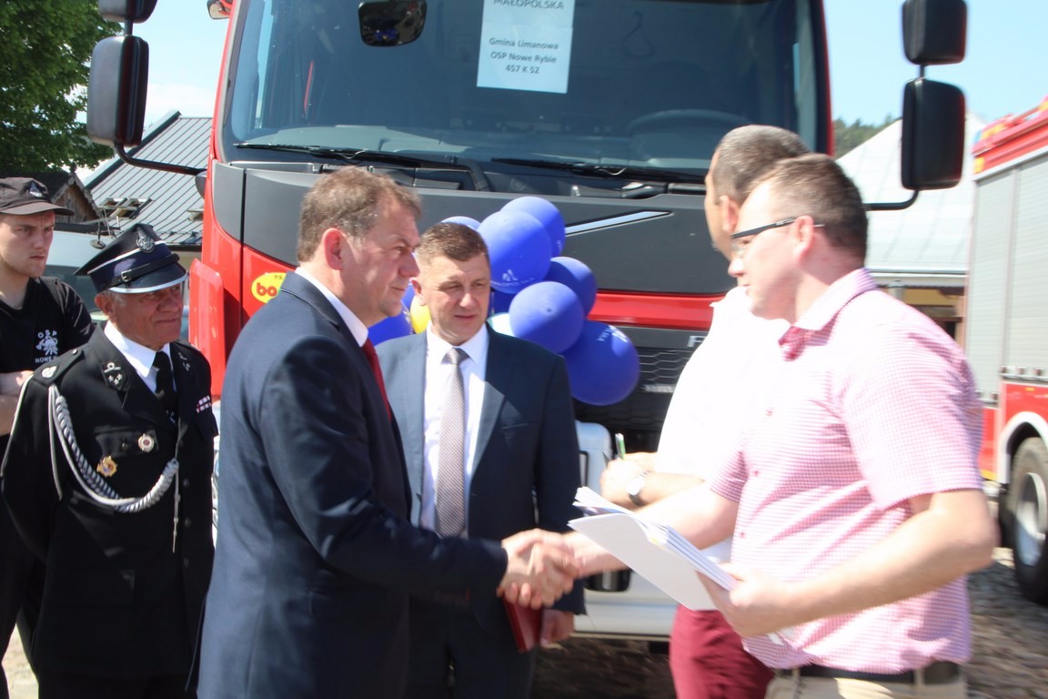 19 maja 2017 w Starym Sączu Marian Mąka -Vice Wójt Gminy Limanowa oraz Stanisław Młyński – Przewodniczący Rady Gminy Limanowa odebrali z rąk Leszka Zegzdy, Członka Zarządu Województwa Małopolskiego i Urszuli Nowogórskiej –Przewodniczącej Sejmiku Województwa Małopolskiego - kluczyki do nowego wozu ratowniczo-gaśniczego. Samorządy współfiansowały zakup wartego ponad 680 tys. zł Volvo, które trafi do OSP w Nowym Rybiu.