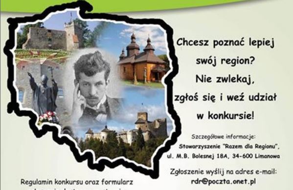 Stowarzyszenie „Razem dla Regionu” realizuje zadanie publiczne pn. „Moja mała Ojczyzna”, będące częścią zadania publicznego Województwa Małopolskiego w dziedzinie kultury w 2017 roku pn. „MECENAT MAŁOPOLSKI”. W związku z tym Stowarzyszenie przeprowadza w tym roku już IV edycję konkursu pn. „Moja mała Ojczyzna”.Dzięki wspaniałej idei w pełni wpisującej się w proces edukacyjny dzieci i młodzieży, konkurs został objęty honorowym patronatem przez Barbarę Nowak – Małopolskiego Kuratora Oświaty w Krakowie oraz Urszulę Nowogórską – Przewodniczącą Sejmiku Województwa Małopolskiego. Udział w konkursie jest dla uczniów niezwykłą okazją poznania Małej Ojczyzny, jaką jest otaczająca przyroda, kultura, tradycja. Konkurs jest doskonałym sprawdzianem wiedzy na temat regionu, lokalnej tradycji i kultury.