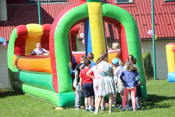 Z tej okazji, zamiast w zajęciach dydaktycznych, uczniowie uczestniczyli w konkursach i zabawach.  Słoneczna pogoda dopisała, więc uczniowie mogli skorzystać z dmuchanych zamków i zjeżdżalni oraz uczestniczyć w rozgrywkach sportowych.