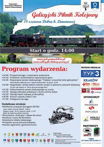 Również 18 czerwca na stacji PKP w Dobrej odbędzie się Galicyjski Piknik Kolejowy. W programie imprezy m.in. przyjazd pociągu retro do Dobrej, Przegląd Kolejowej Piosenki, dyskusja panelowa pt. „