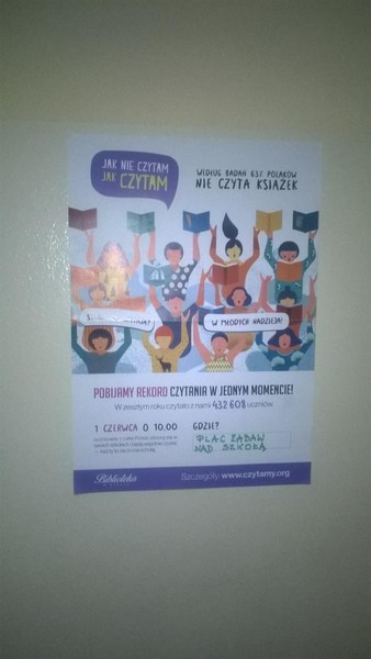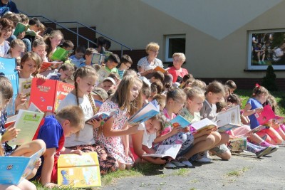 W tym samym dniu uczniowie szkoły wraz z wychowawcami i nauczycielami wzięli również udział w akcji „Jak nie czytam, jak czytam”. Organizatorem głównym akcji jest redakcja miesięcznika „Biblioteka w Szkole”. Głównym celem akcji jest zwrócenie uwagi na diagnozowany przez coroczne badania Biblioteki Narodowej spadek czytelnictwa wśród dorosłych Polaków i wykorzystanie masowej akcji do pokazania większej aktywności czytelniczej dzieci i młodzieży. W przedsięwzięciu wzięli udział wszyscy uczniowie szkoły od klas zerowych po III Gimnazjum. W masowym czytaniu uczestniczyło 235 uczniów. Była to wielka atrakcja dla dzieci i młodzieży, gdyż każdy przyniósł do szkoły swoją ulubioną książkę, którą mógł się pochwalić kolegom i koleżankom. O godzinie 10 wszyscy uczniowie wraz z opiekunami zebrali się na pięknym wzgórzu niedaleko szkoły z książkami. Oprócz czytelników można było również podziwiać piękne widoki okolicy.