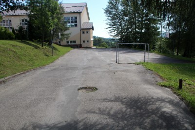 Inwestycja przy Szkole Podstawowej w Kłodnem obejmować będzie budowę boiska sportowego o nawierzchni syntetycznej z piłkochwytami, utwardzenie powierzchni działki, przebudowę ogrodzenia oraz utwardzenie i remont pobocza drogi do szkoły. Długość boiska 43,30 m, szerokość 30,50 m.