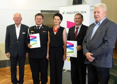 Uroczyste przekazanie umowy na dofinansowanie OSP, w którym uczestniczyli przedstawiciele Urzędu Wojewódzkiego: Przewodnicząca Sejmiku Województwa Małopolskiego - Urszula Nowogórska, Członek Zarządu - Leszek Zegzda i Radny Sejmiku - Stanisław Pasoń, odbyło się 11 sierpnia br. w Małopolskim Centrum Doskonalenia Nauczycieli w Nowym Sączu. W imieniu Gminy Limanowa umowę odebrał Zastępca Wójta - Marian Mąka i Prezes OSP Wysokie - Tadeusz Witecki.