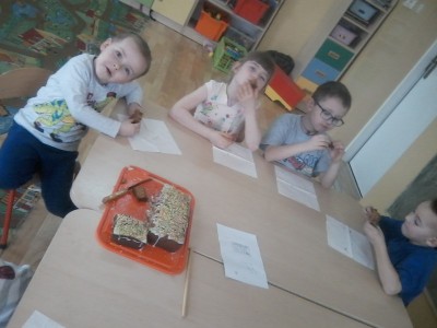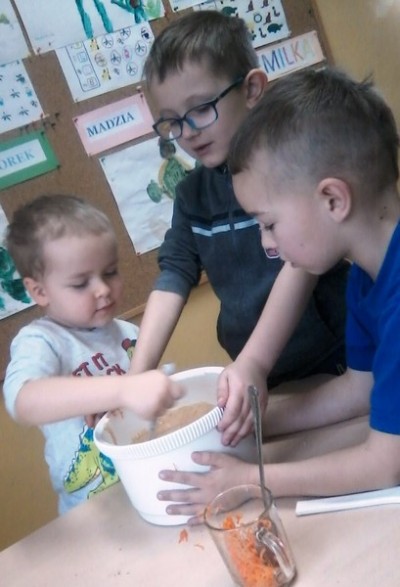 Nie obyło się bez do odczytywania przepisów obrazkowych i planowania czynności. Działania te zaowocowały przepysznymi poczęstunkami!