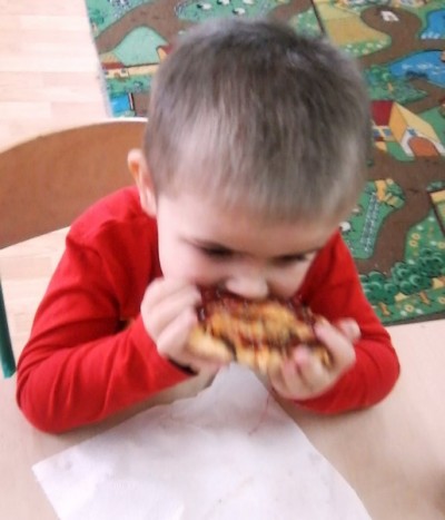 Zapachy roznosiły się po całym budynku! „Kuchcikowo” cieszyło się  powodzeniem. W czasie tych zajęć przedszkolaki miały okazję do współpracy, rozwijały zmysły- nie tylko smaku, ale i węchu, dotyku, wzroku. Wychowankowie aktywnie współdziałali w grupie, wykazywali się kreatywnością i pracowitością.