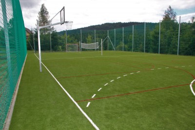 371. 112,80 zł. W ramach inwestycji utwardzono powierzchnie działki, wybudowano ogrodzenie, utwardzono powierzchnie gruntu. Na boisku przed ułożeniem warstw podbudowy została wykonana niwelacja terenu i odwodnienie. Boisko zostało wyposażone w niezbędne urządzenia przeznaczone do gry w piłę ręczną, nożną, siatkówkę oraz koszykówkę. Również ten obiekt został oddzielony od terenów zielonych obrzeżami betonowym.