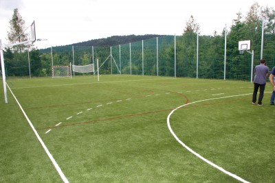 281.071,15 zł. W ramach inwestycji wykonano remont ogrodzenia i utwardzenia powierzchni gruntu. Boisko zostało wyposażone w niezbędne urządzenia przeznaczone do gry w piłę nożną, piłkę ręczną, siatkówkę oraz koszykówkę.