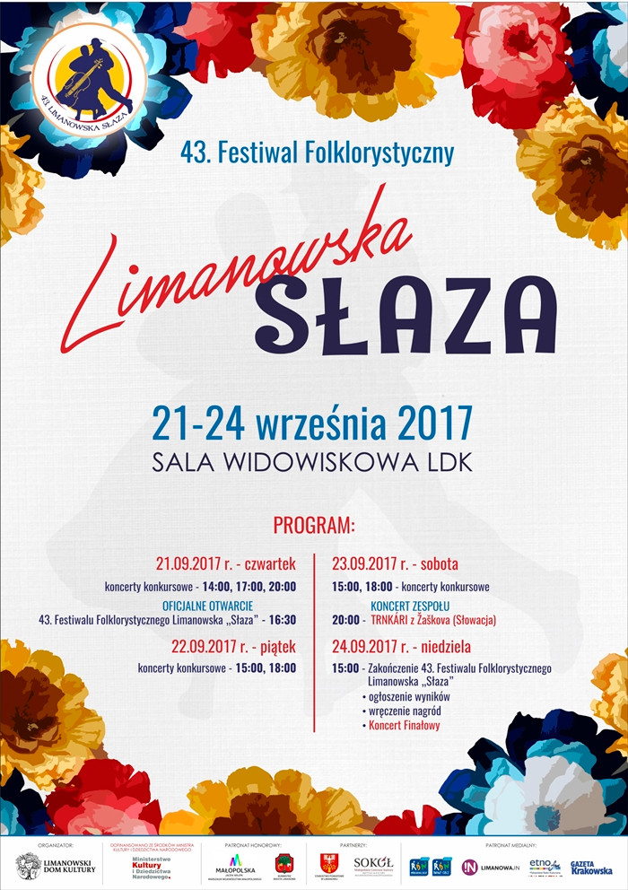 W tegorocznej Limanowskiej SŁAZIE wystąpi ok. 800 wykonawców z całej Limanowszczyzny i nie tylko. Festiwal, którego celem głównym jest ochrona i popularyzacja bogactwa kultury ludowej grup etnograficznych z powiatu limanowskiego rozpocznie się w czwartek 21 września o godz. 14:00 i potrwa do niedzieli 24 września kiedy to o godz. 15:00 poznamy jego zwycięzców. Wszystkie koncerty odbywać się będą się na sali widowiskowej Limanowskiego Domu Kultury.