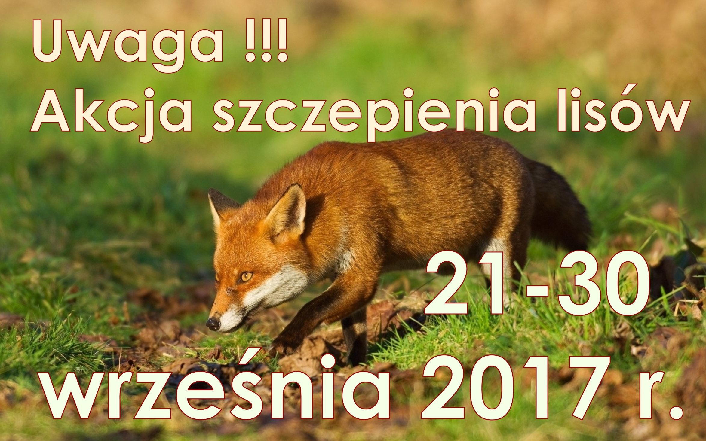 W okresie od 21 do 30 września br. na terenie województwa małopolskiego przeprowadzona zostanie akcja ochronnego szczepienia lisów wolno żyjących przeciwko wściekliźnie. Akcja będzie kontynuacją szczepienia z lat ubiegłych i zostanie wykonana poprzez rozrzucenie szczepionki z samolotów oraz jej ręczne wyłożenie.