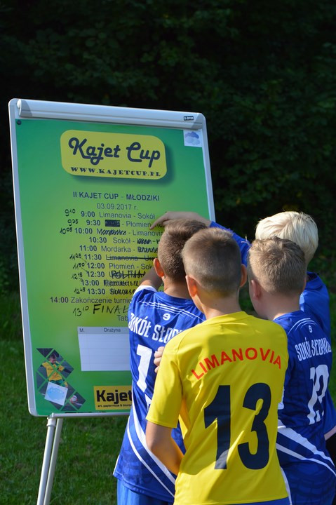 W niedzielę 10 września 2017 r. odbyły się pierwsze rozgrywki w ramach II edycji turnieju piłki nożnej Kajet Cup, zorganizowanego przez LKS Mordarka pod patronatem Wójta Gminy Limanowa. Jako pierwsze do rywalizacji przystąpiły drużyny Młodzików, czyli dzieci urodzonych w roku 2005 i młodszych. Każdy z młodych piłkarzy dawał z siebie wszystko, na boisku widać było ogromne zaangażowanie i wolę walki, a mecze obfitowały w wiele ciekawych akcji.