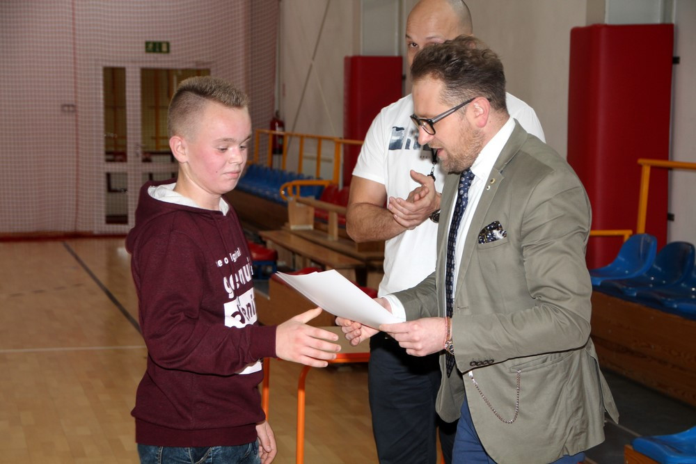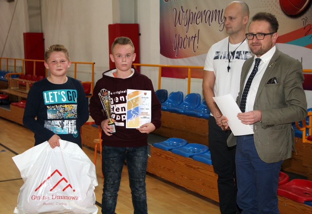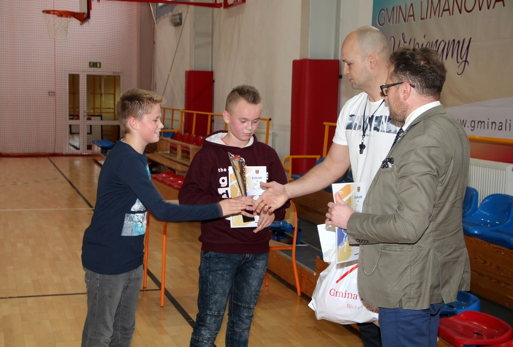 Wręczenia nagród, pucharów i dyplomów dokonali Wojciech Korabik – kierownik Wydziału Kultury i Promocji UG Limanowa oraz Zbigniew Król - nauczyciel wychowania fizycznego w SP w Pasierbcu.