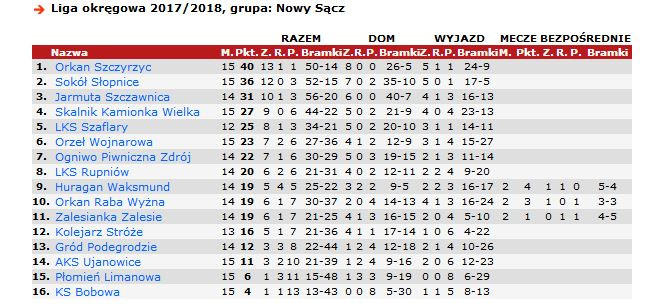Dobiegła końca runda jesienna sezonu piłkarskiego 2017/2018. W ostatnim piłkarskim weekendzie rozegrane zostały spotkania w IV lidze (grupa Małopolska-wschód) i nowosądeckiej okręgówce (V liga). LKS Rupniów, który w tym sezonie dopiero rozpoczął swoją przygodę na boiskach nowosądeckiej okręgówki, po rundzie jesiennej uplasował się w samym środku stawki zajmując ósme miejsce w tabeli.