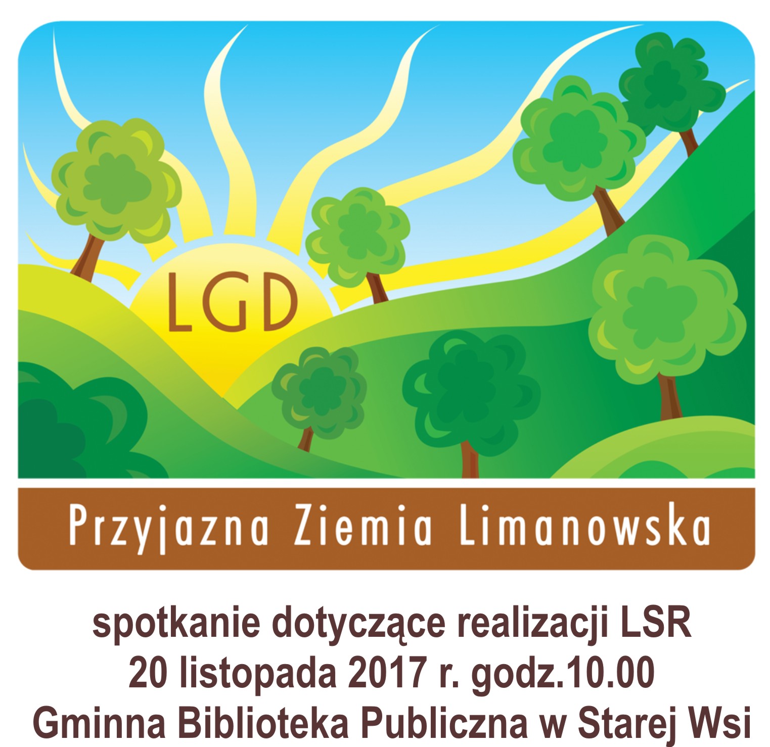 Lokalna Grupa Działania "Przyjazna Ziemia Limanowska" zaprasza na spotkanie informacyjne dot. realizacji Lokalnej Strategii Rozwoju. Spotkanie odbędzie się w poniedziałek 20 listopada br. o godz. 10.00 w siedzibie Gminnej Biblioteki Publicznej w Starej Wsi. Po spotkaniu zaplanowano także dyżur pracowników LGD, podczas którego można będzie skorzystać z indywidualnego doradztwa.