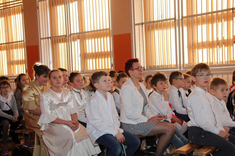Uroczystą część obchodów uświetnił występ artystyczny uczniów. Widzowie docenili talent sceniczny i ogromne zaangażowanie dzieci w przygotowanie akademii, nagradzając występ gromkimi brawami.