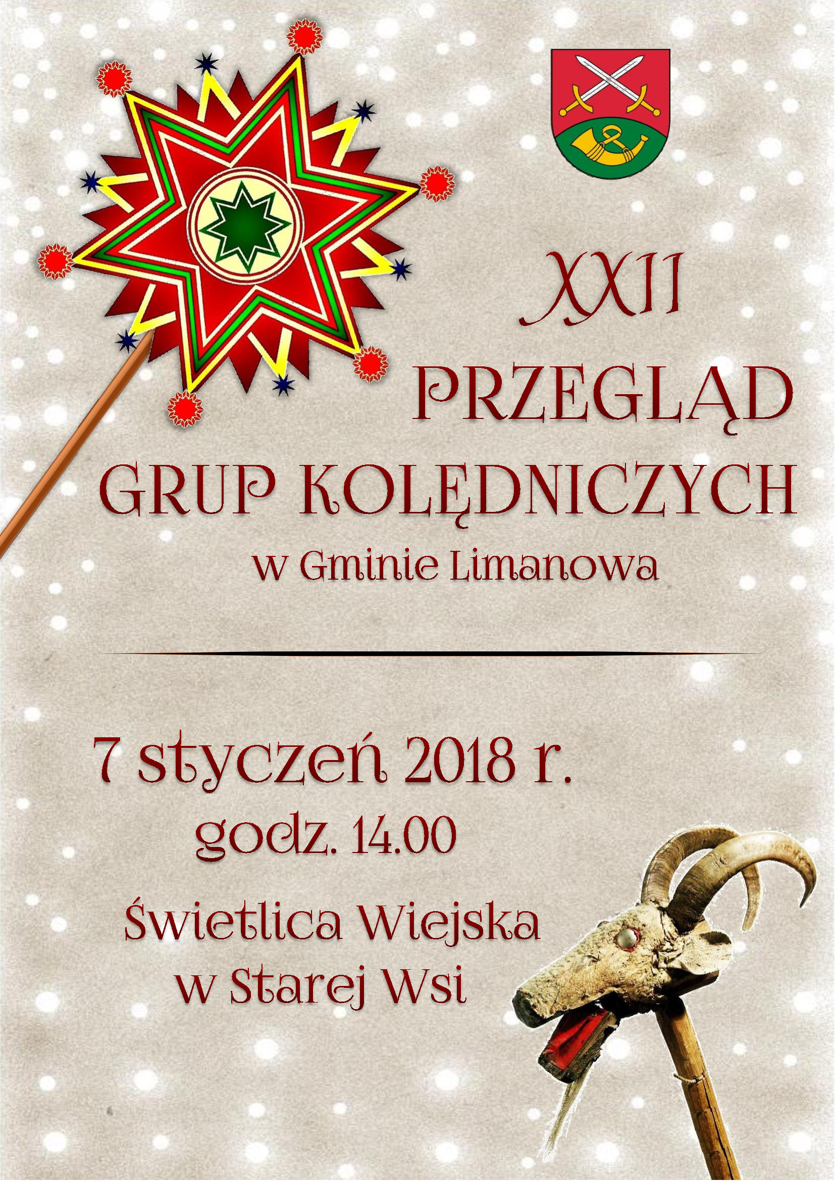 W niedzielę 7 stycznia 2018 r. w świetlicy wiejskiej w Starej Wsi zakolędują gminny kolędnicy. Kolędowanie odbędzie sie w ramach XXII Przeglądu Grup Kolędniczych Gminy Limanowa, a w tegorocznej edycji gminnego konkursu kolęd zaprezentuje sie 14 grup.