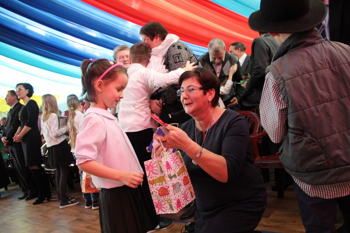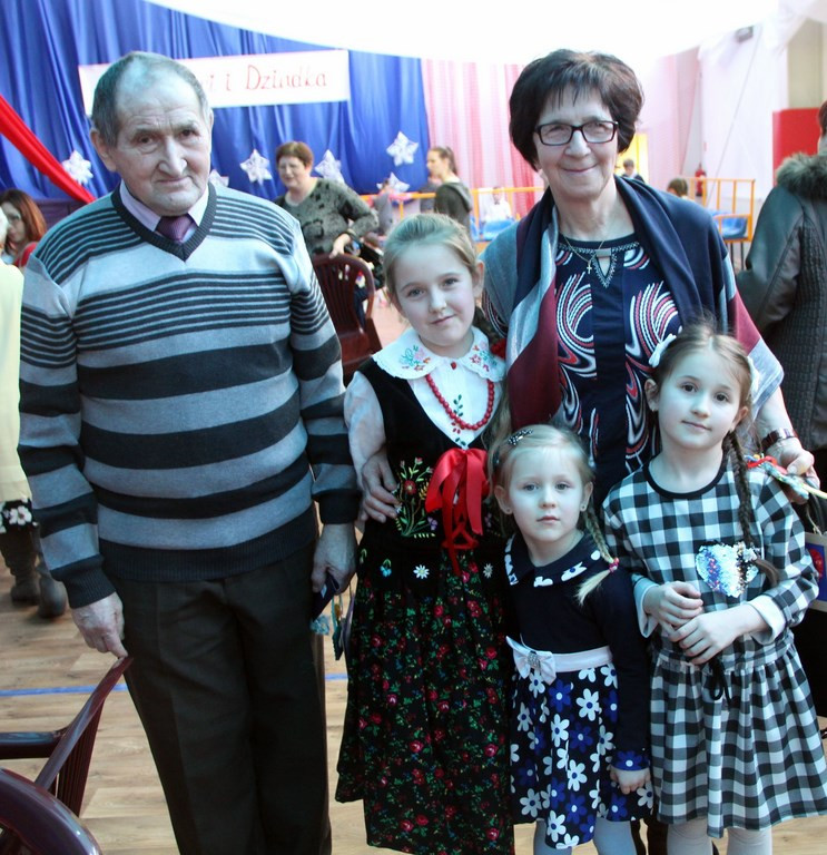 Na zakończenie wnuki i wnuczki złożyły swoim Dziadkom i Babciom życzenia, wręczając drobne upominki. Po uroczystym „STO LAT” Seniorzy spotkali się tradycyjnie na skromnym poczęstunku przygotowanym przez Radę Rodziców, w trakcie którego mieli okazję porozmawiać, zaśpiewać kolędy i spędzić czas z wnukami.
