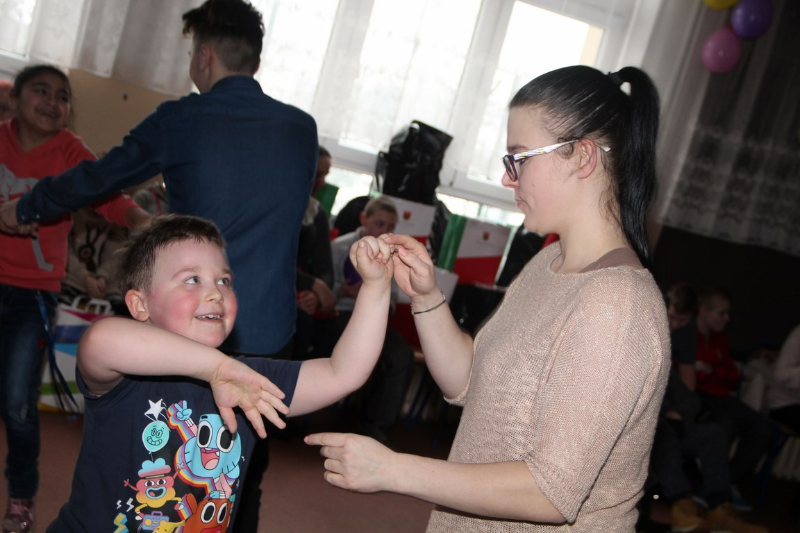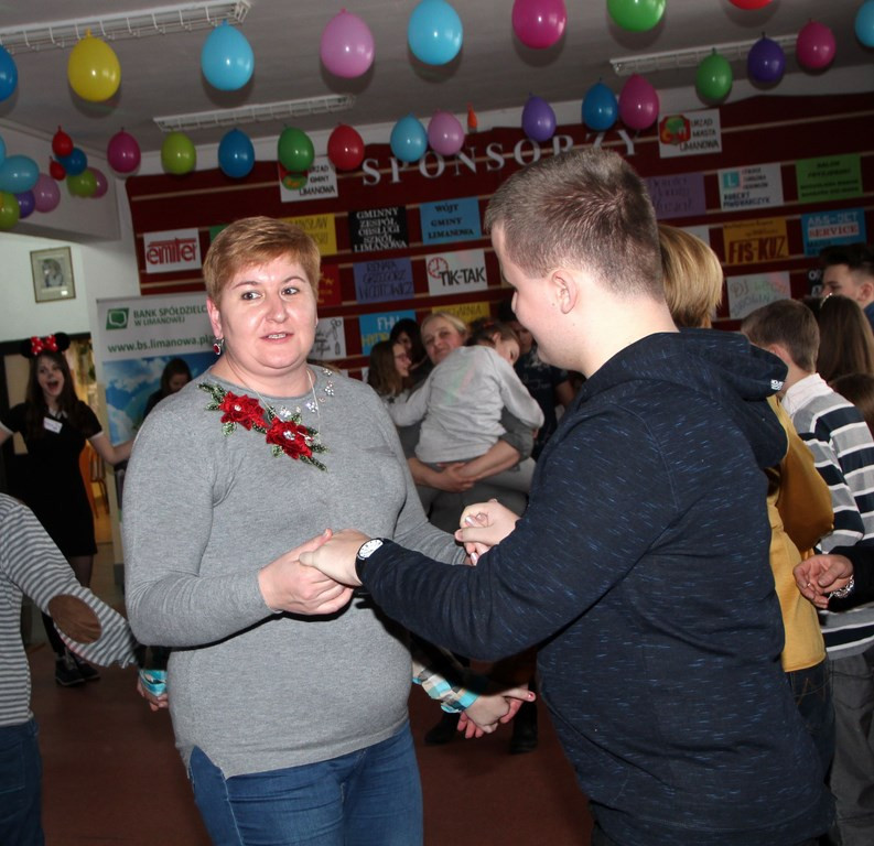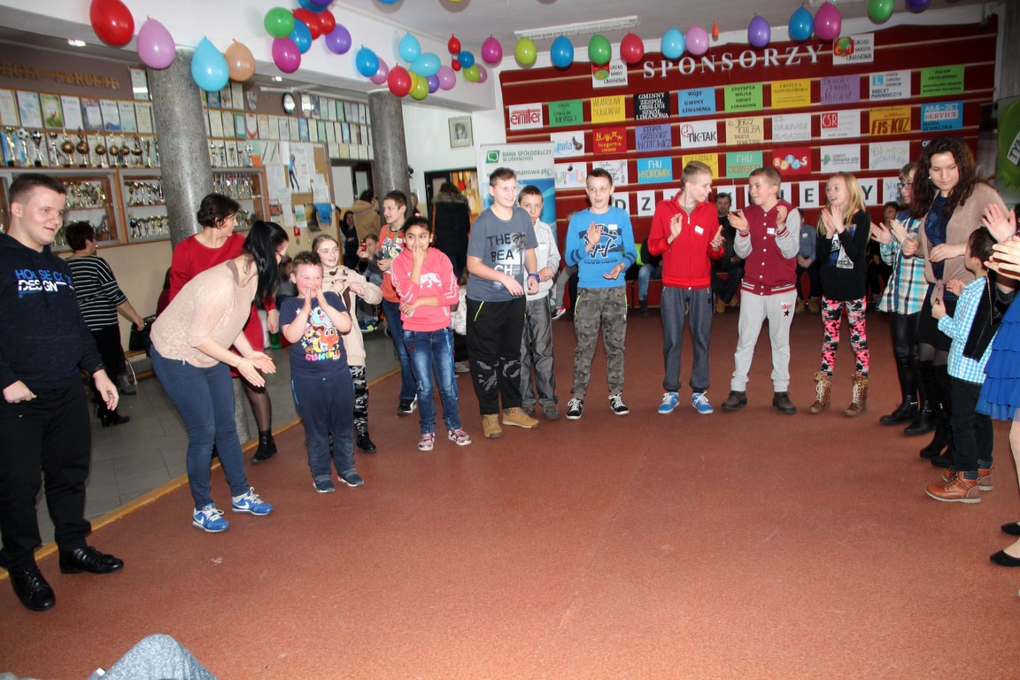 Po zakończeniu części oficjalnej wszyscy udali się na gorący posiłek a po nim przyszedł czas na zabawę, którą poprowadził DJ Lech Zwoliński. W rytm muzyki bawili się z dziećmi gimnazjaliści jak również rodzice i nauczyciele. W tym ostatnim dniu karnawału przewidziano wiele atrakcji, m.in. zabawę z balonami oraz malowanie twarzy, które cieszyło się bardzo dużym zainteresowaniem.