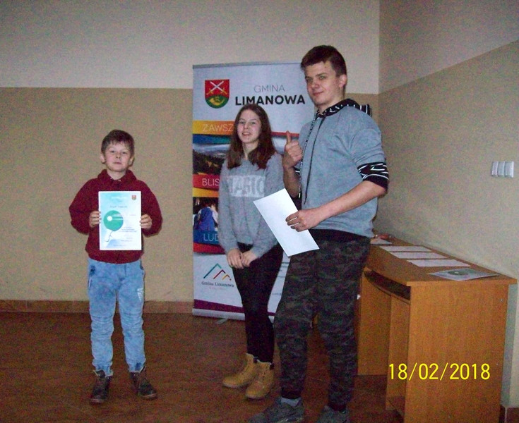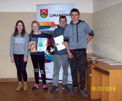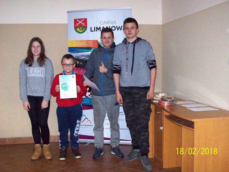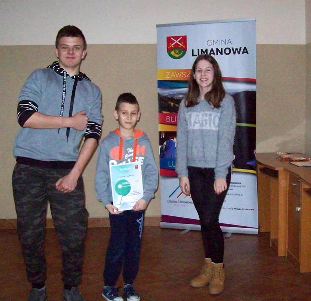 Nagrody dla zwycięzców (komplety do gry w tenisa stołowego i piłki) ufundowała Gmina Limanowa, a wszyscy uczestnicy otrzymali również pamiątkowe dyplomy. Organizatorzy i uczestnicy dziękują starszym koleżankom i kolegom: Ilonie, Arturowi i Dawidowi za pomoc w sprawnym prowadzeniu zawodów, rodzicom za sędziowanie i kibicowanie, a rodzeństwu za wspieranie "swoich" w wyjątkowo zaciętych i wyrównanych pojedynkach.