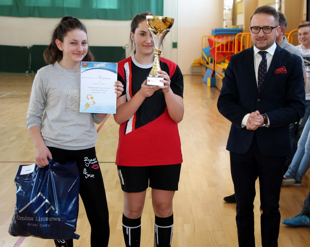 Wszystkie drużyny otrzymały nagrody i dyplomy ufundowane przez Urząd Gminy w Limanowej, a trzy pierwsze miejsca dodatkowo zostały wyróżnione pucharami, których wręczenia dokonali Kierownik Wydziału Kultury i Promocji Urzędu Gminy Limanowa – Wojciech Korabik oraz sędzia zawodów – Feliks Smęda.