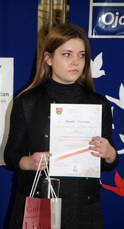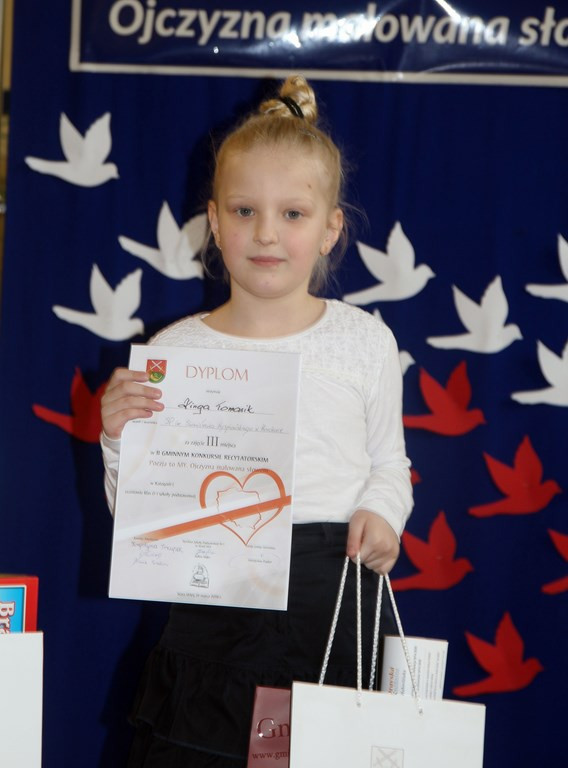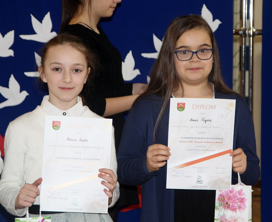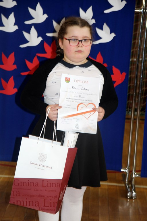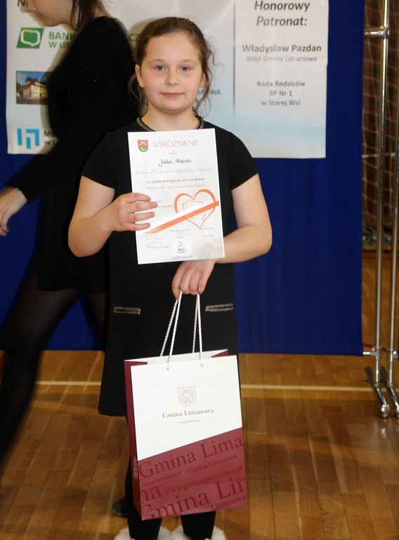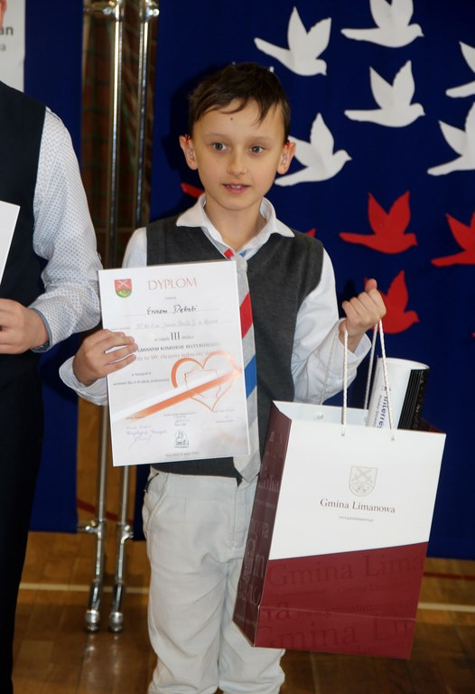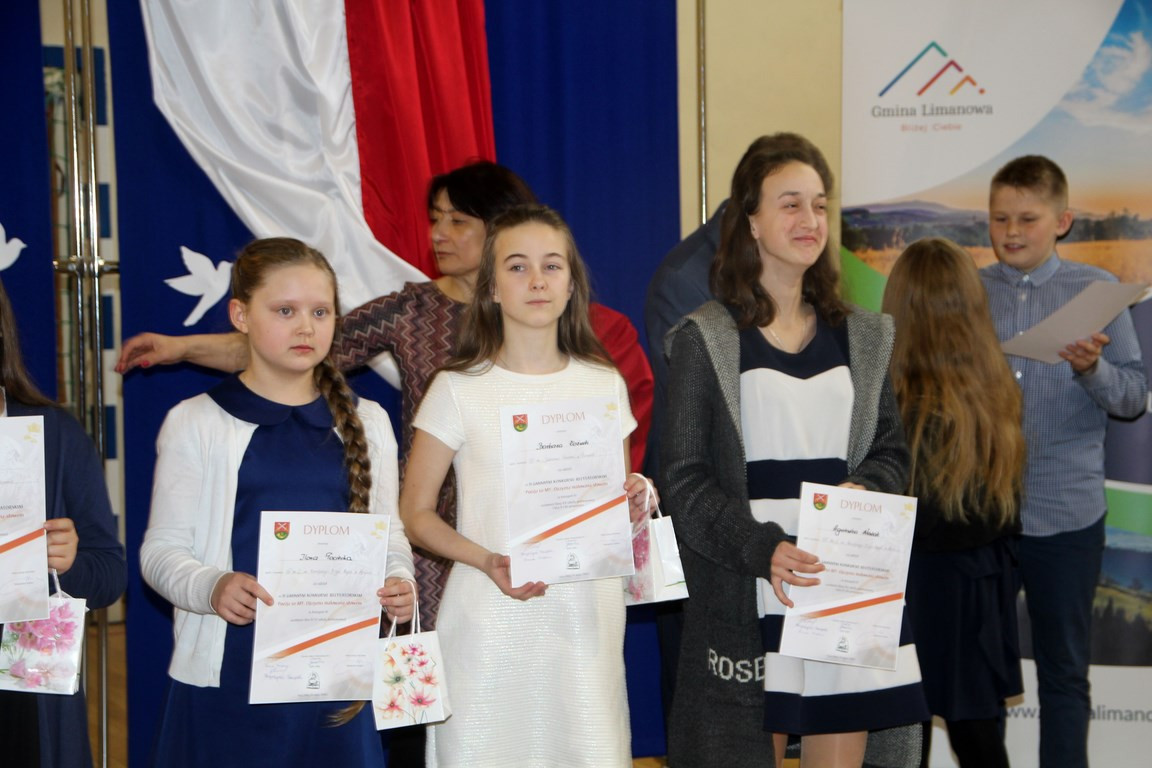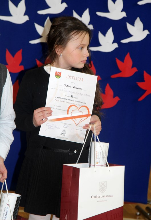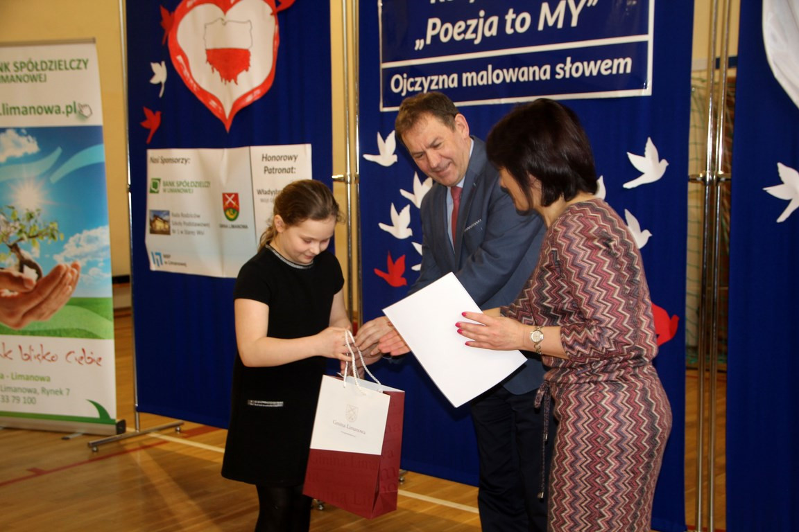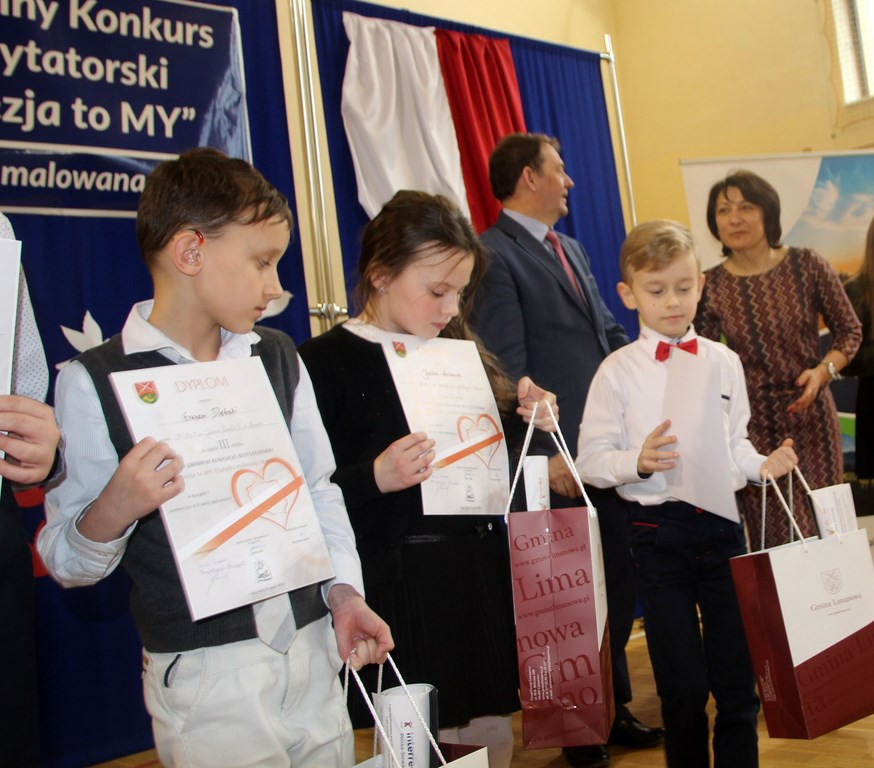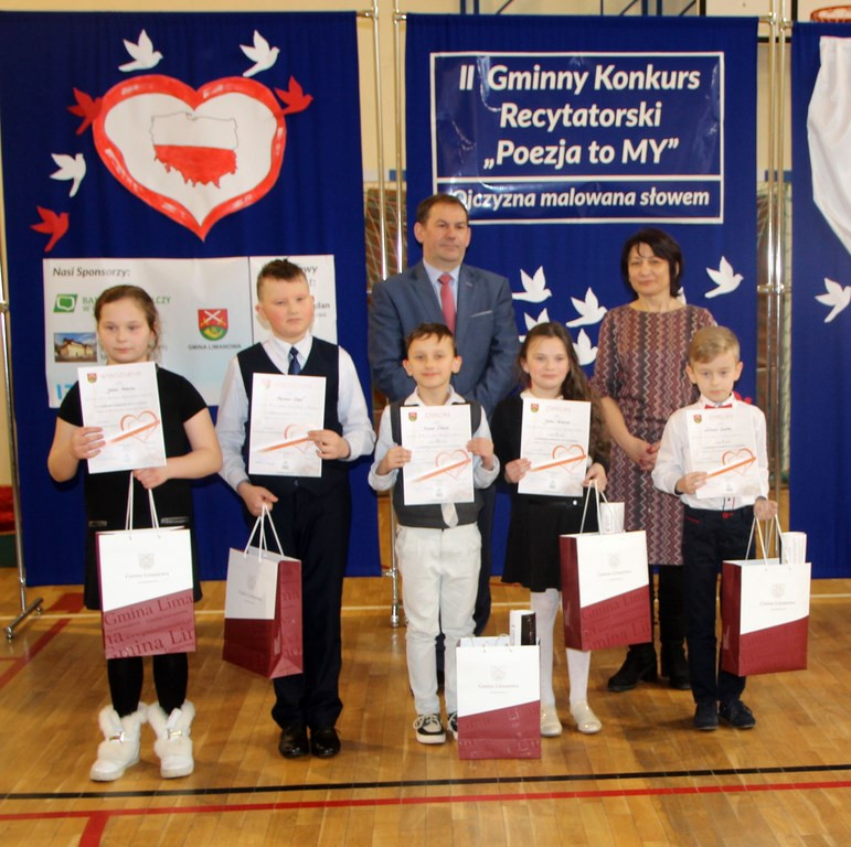 Laureaci II Gminnego Konkursu Recytatorskiego Poezja to MY. Ojczyzna malowana słowem, otrzymali z rąk Mariana Mąki - zastępcy Wójta Gminy Limanowa oraz Haliny Mąka - dyrektor SP nr 1 im Bohaterów Westerplatte w Starej Wsi nagrody rzeczowe i książkowe, a także pamiątkowe dyplomy. Nagrody dla laureatów zostały ufundowane przez Gminę Limanowa i Miejską Bibliotekę Publiczną w Limanowej. Pozostałym uczestnikom konkursu wręczone zostały nagrody pocieszenia oraz pamiątkowe dyplomy.