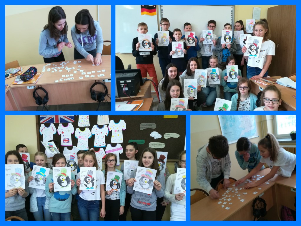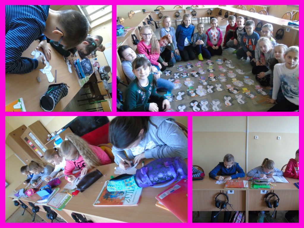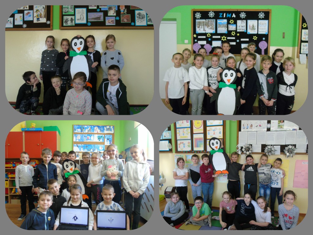 Wśród uczniów klas młodszych popularnością cieszył się Dzień Pingwina. Dzieci z klasy 0 b wykonały plakat przedstawiający tańczące pingwiny oraz zatańczyły taniec pingwinów. Dzieci zrobiły sobie zdjęcie z wędrującym po klasach pingwinem oraz poszukiwały ukrytej w szkole maskotki. Oprócz tego na drzwiach każdej klasy widniał wizerunek Pingwina Dżentelmena z zwrotami grzecznościowymi w języku angielskim. W tym dniu dominowały kolory: czarny, biały i szary.